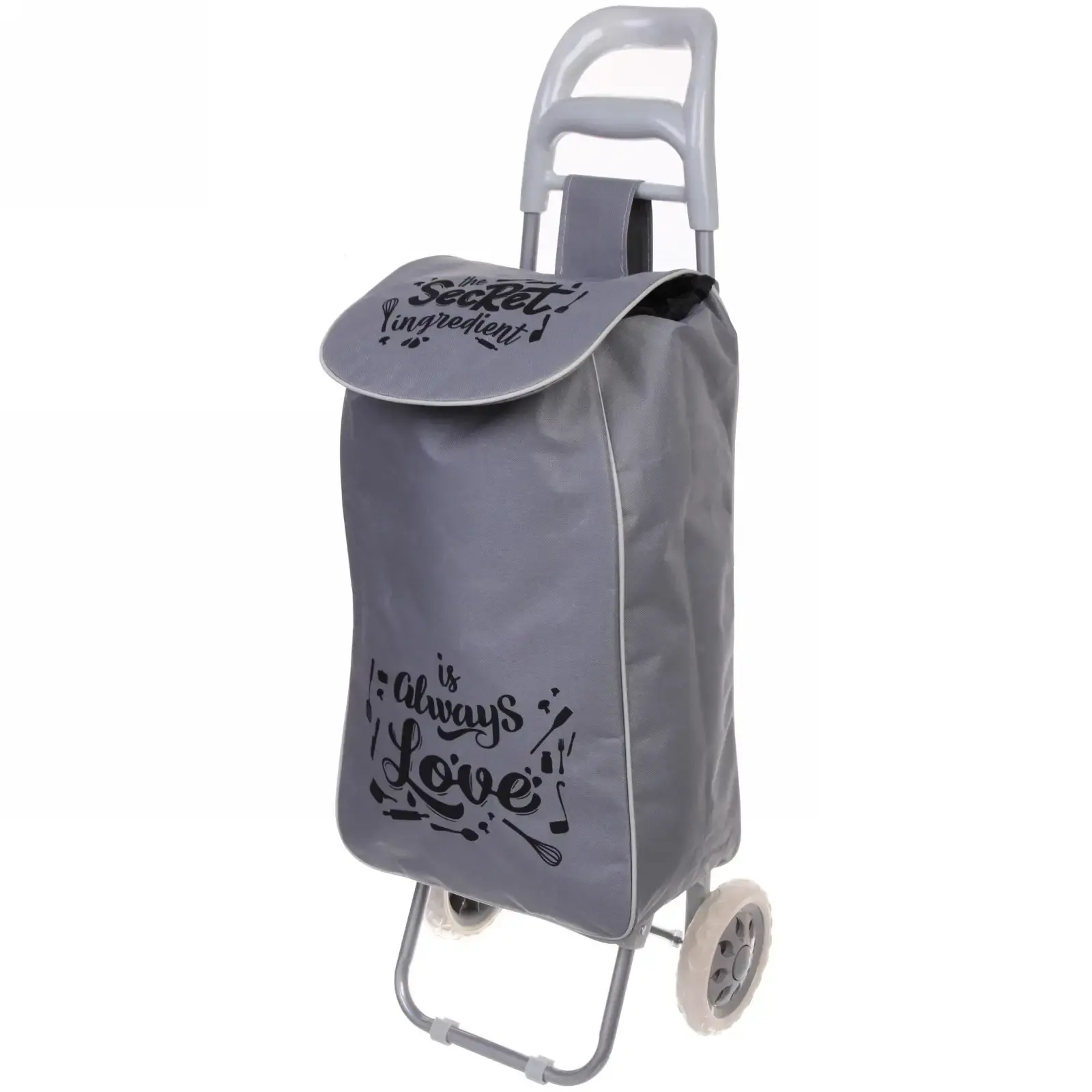 Размеры (ВхШхГ): 95х30х34 см. Материал: прочный текстиль и металл. Цвет: серый с акцентами светлой строчки. Надпись на передней панели создает уютную атмосферу: "The secret ingredient is always Love".