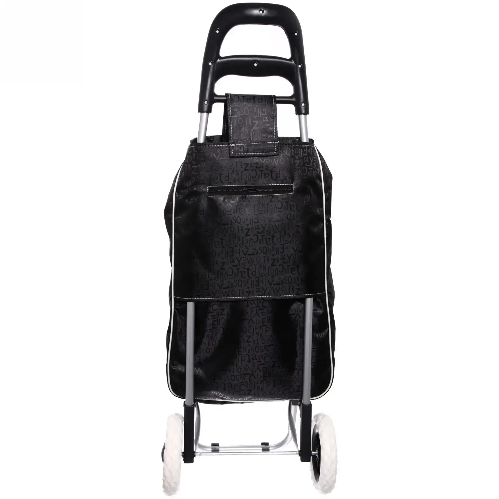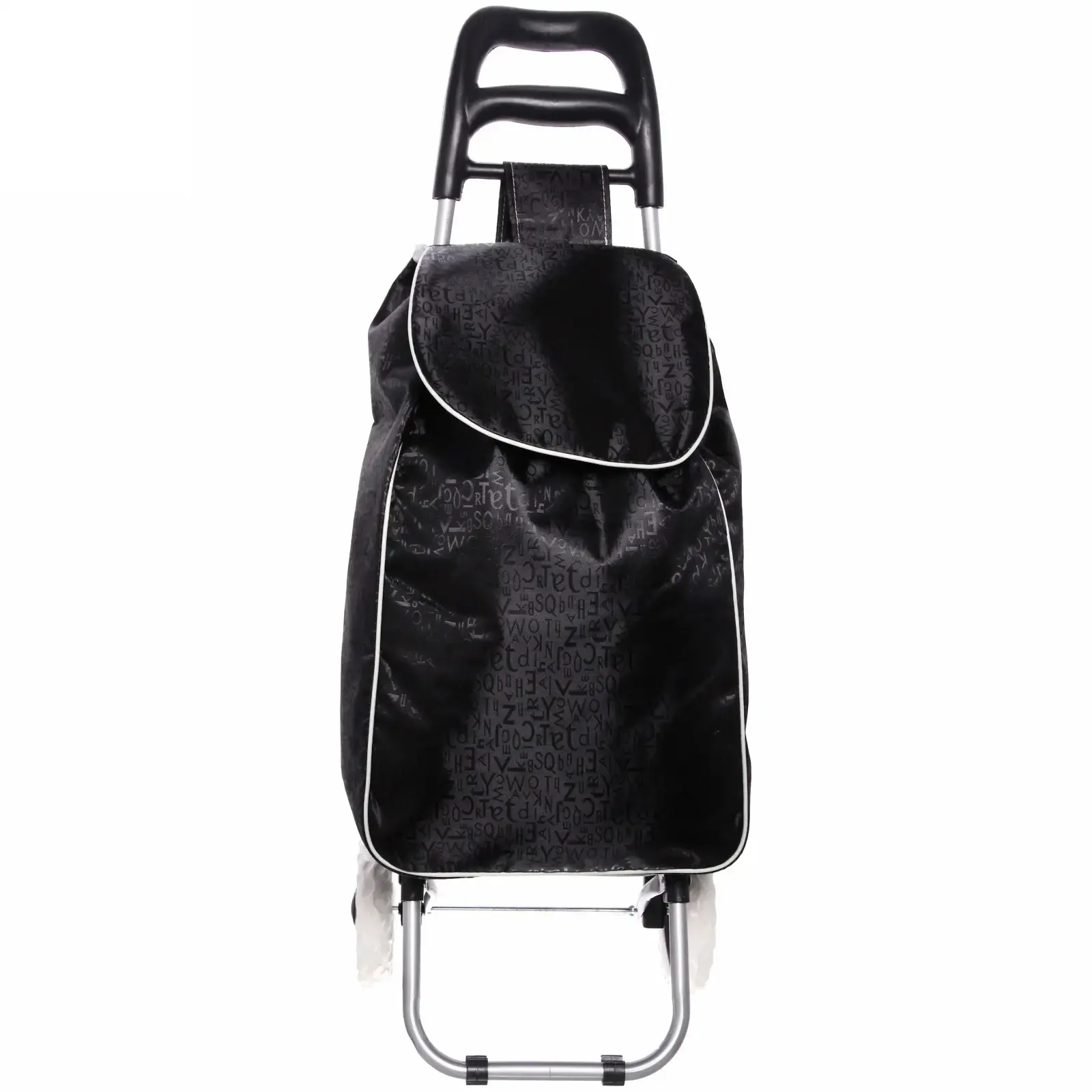 Тележку легко транспортировать благодаря продуманной металлической раме и двум большим устойчивым колесам (16 см), которые обеспечивают хорошую маневренность и плавный ход даже по неровной поверхности. Сумка выполнена из износостойкого текстиля с декоративными буквами, оснащена удобной крышкой-клапаном и дополнительным внешним карманом — удобно для мелочей и ключей. Благодаря оптимальным размерам (95×33×30 см) можно с комфортом разместить продукты, личные вещи или бытовые принадлежности.