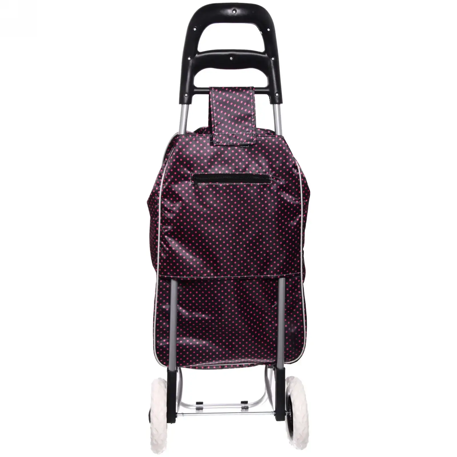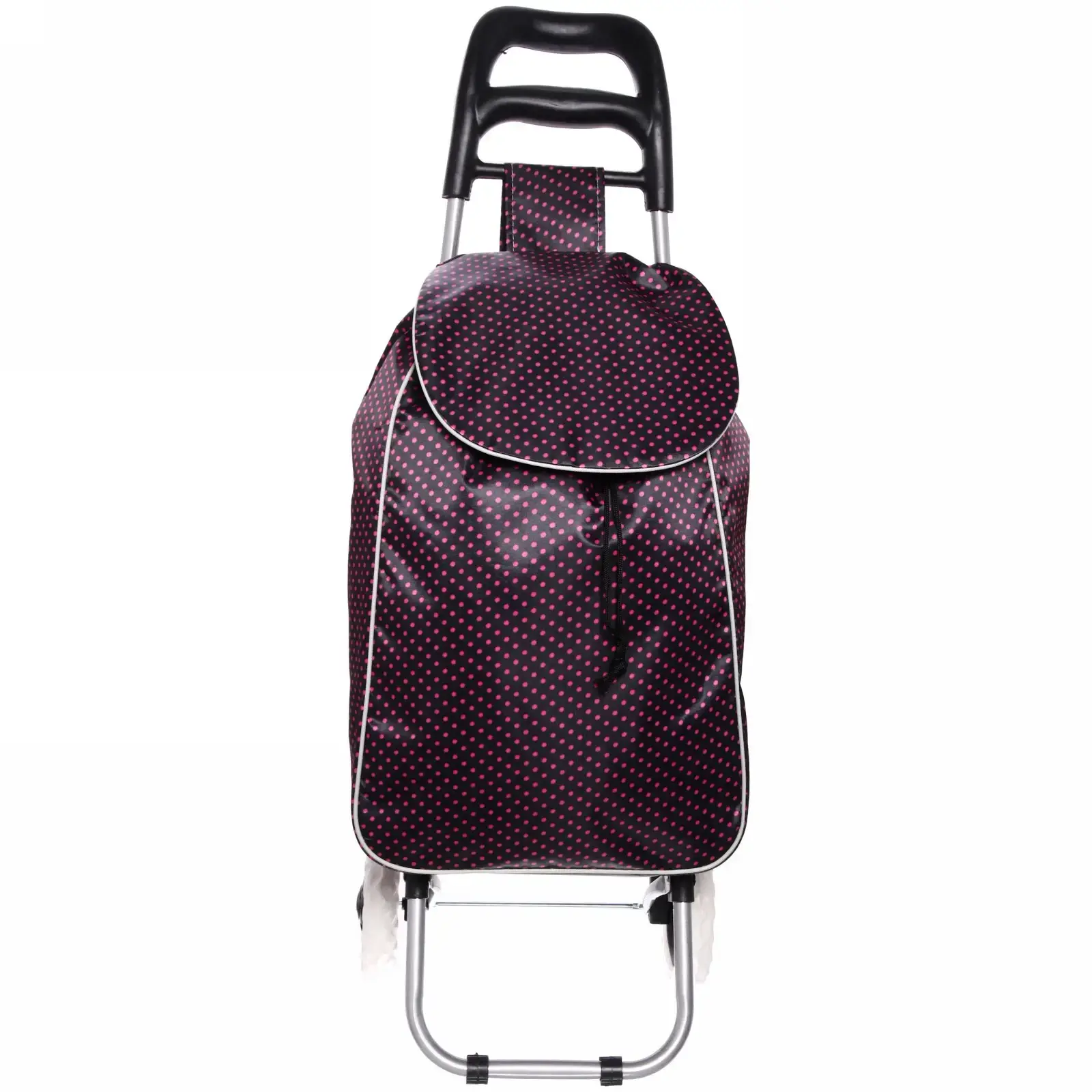 Тележка имеет стильный коричневый цвет с узором в горошек, что придаёт ей привлекательный внешний вид. Она не требует специальных условий хранения и легко помещается в любом шкафу или углу квартиры. Сумка на колесах — это не только удобно, но и стильно!