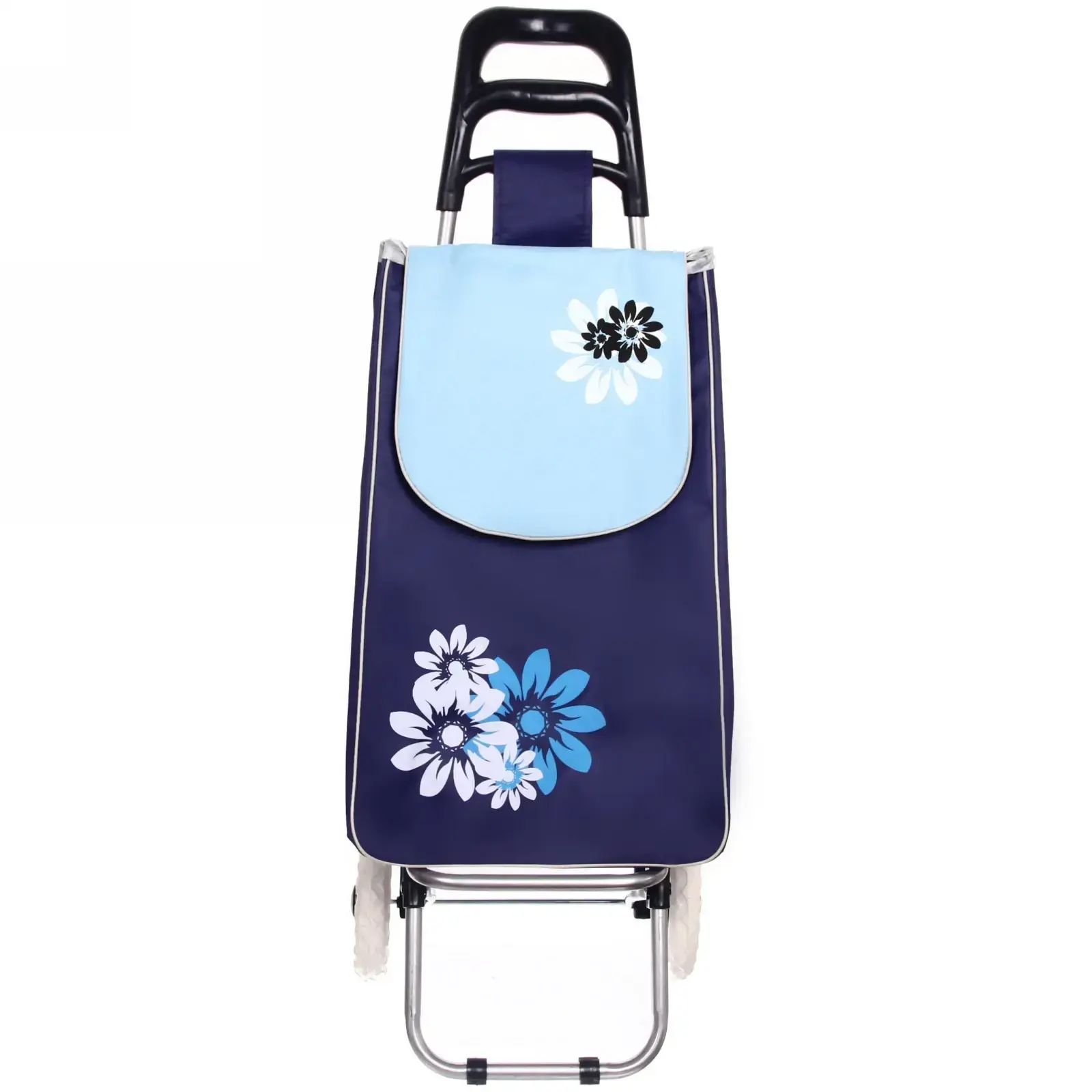 Тележка имеет размеры 95х33х30 см и способна выдерживать нагрузку до 30 кг. Она оснащена двумя большими колесами диаметром 16 см, что обеспечивает легкость маневрирования даже в ограниченных пространствах. Сумка выполнена из прочного текстильного материала с цветочным узором, что делает её не только функциональной, но и стильной. Тележка идеально подходит для использования в магазинах, на рынках или для переноски вещей на даче.