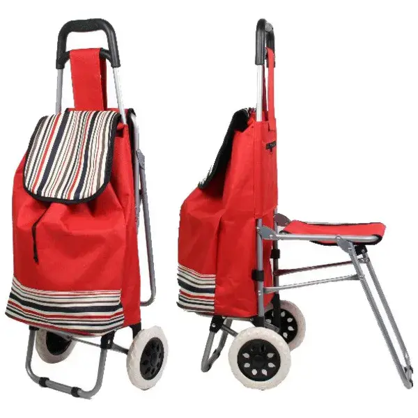 Тележка хозяйственная с сумкой и откидным стулом — это идеальное решение для тех, кто ценит комфорт и практичность в повседневной жизни. С её помощью вы сможете легко и быстро переносить покупки, а также удобно отдохнуть в любое время. Яркий красный цвет и современный дизайн делают её не только полезной, но и стильной.