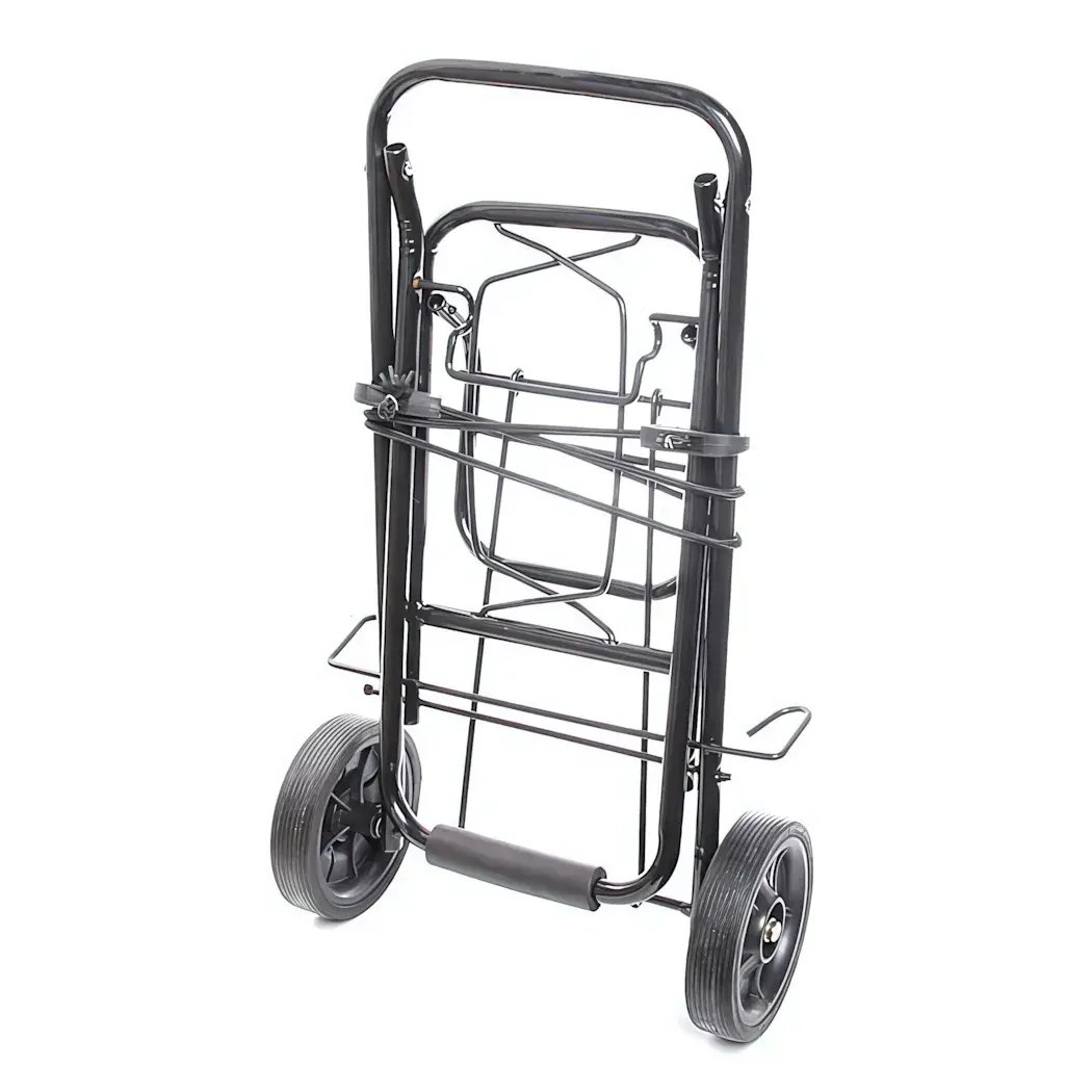 Тележка имеет размеры 98х34х36 см и грузоподъемность до 50 кг, что делает её универсальным инструментом для любых нужд. Чёрный металлический каркас и текстильные элементы придают ей стильный и современный вид. Не упустите возможность сделать свою жизнь проще с тележкой SYD-05!