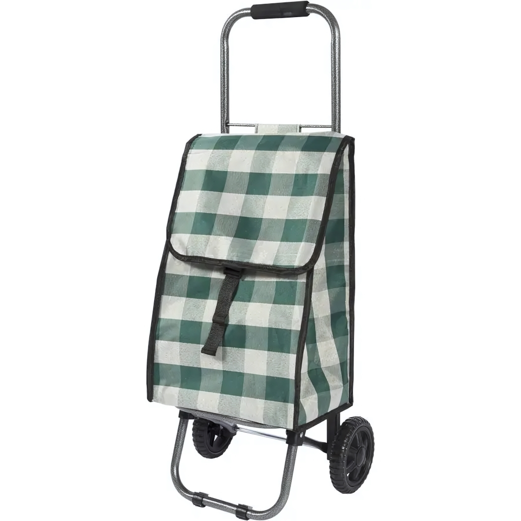 Хозяйственная тележка с сумкой, складная, для перевозки грузов до 25 кг, зеленая клетка