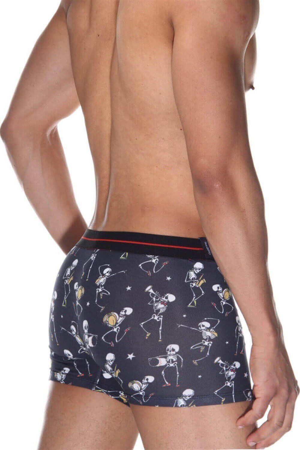 Представляем мужские трусы-боксеры 'Darkzone', которые станут вашим надежным спутником в повседневной жизни. Темно-серый цвет с уникальным принтом в виде скелетов добавит характер вашему образу.