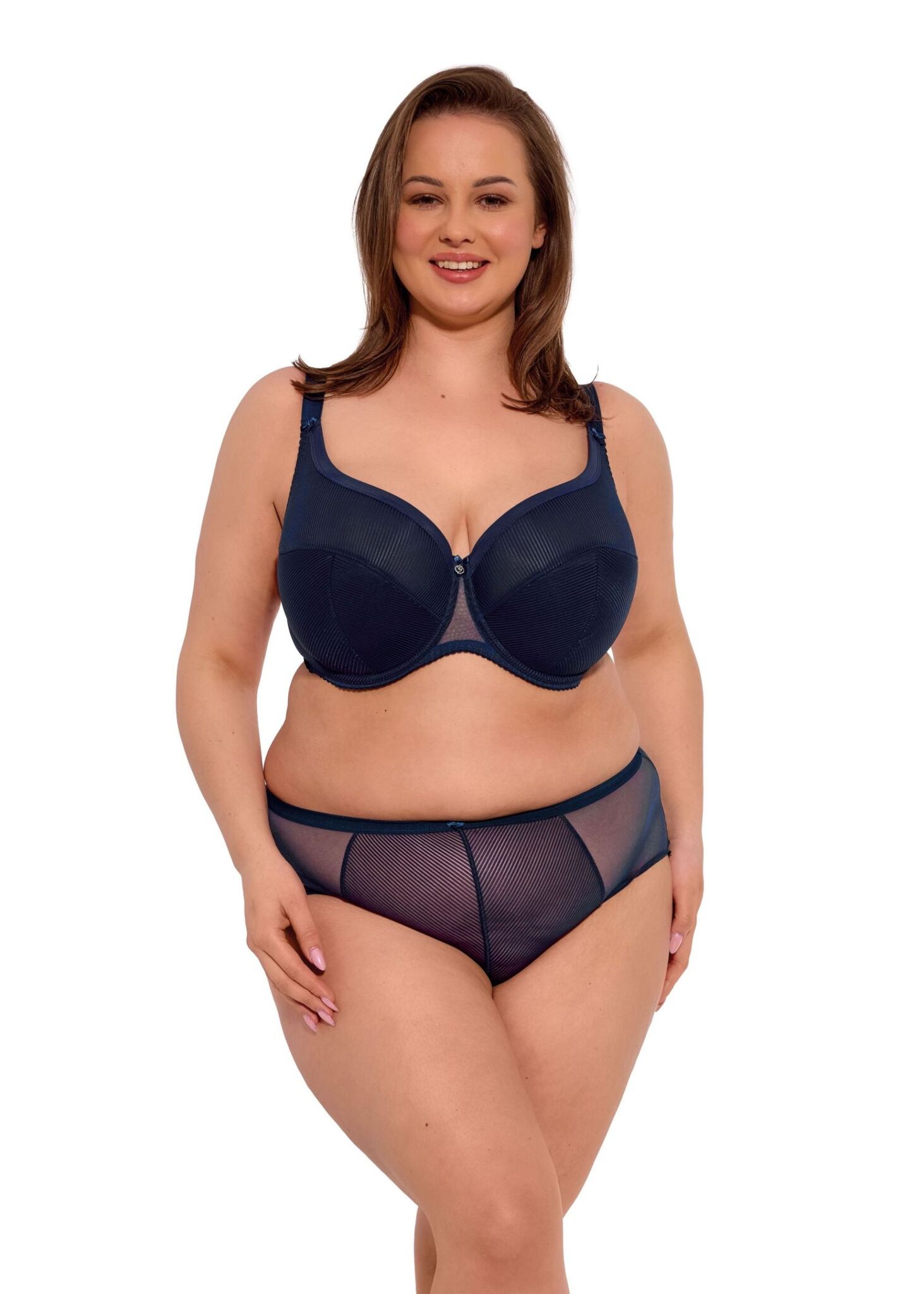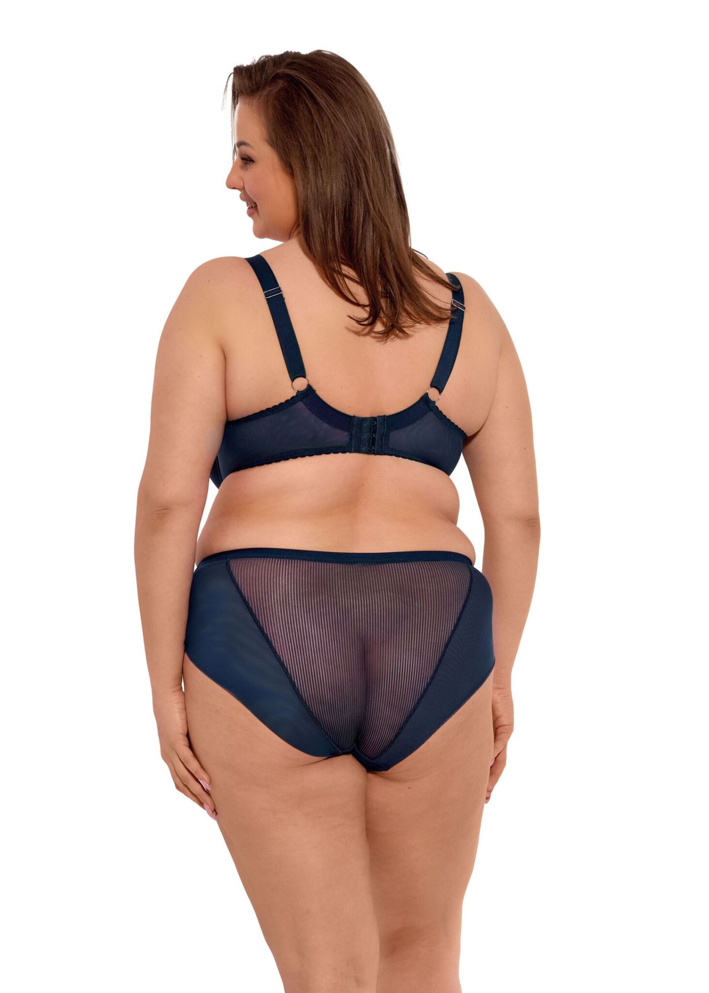 Темно-синий цвет и полосатый узор создают элегантный внешний вид. Сетчатые вставки на спинке добавляют нотку соблазнительности, сохраняя при этом удобство.
