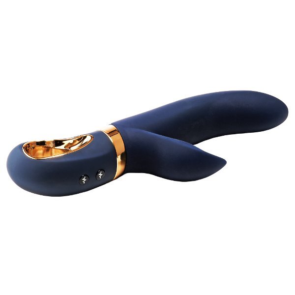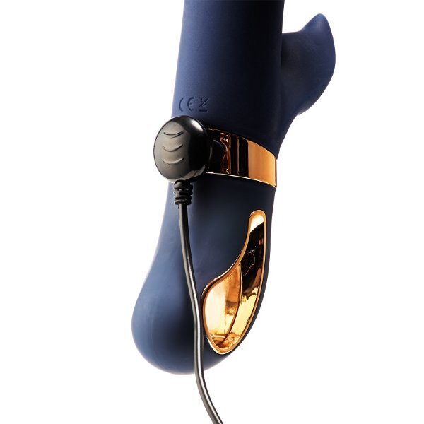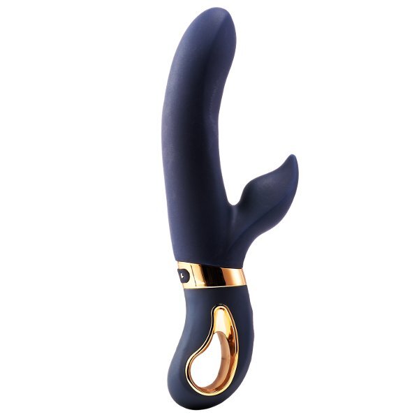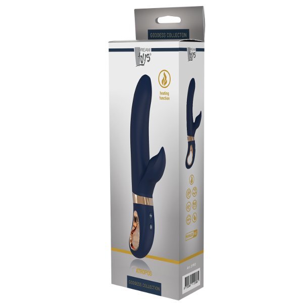 Вибратор-кролик Atropos, 23см, темно-синий, силикон, вибрация + подогрев