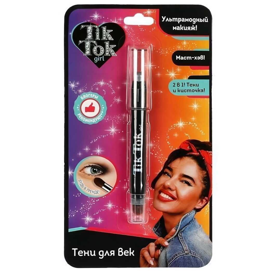 Тени для век серебристые с кисточкой "Tik tok girl", 11*20*2см