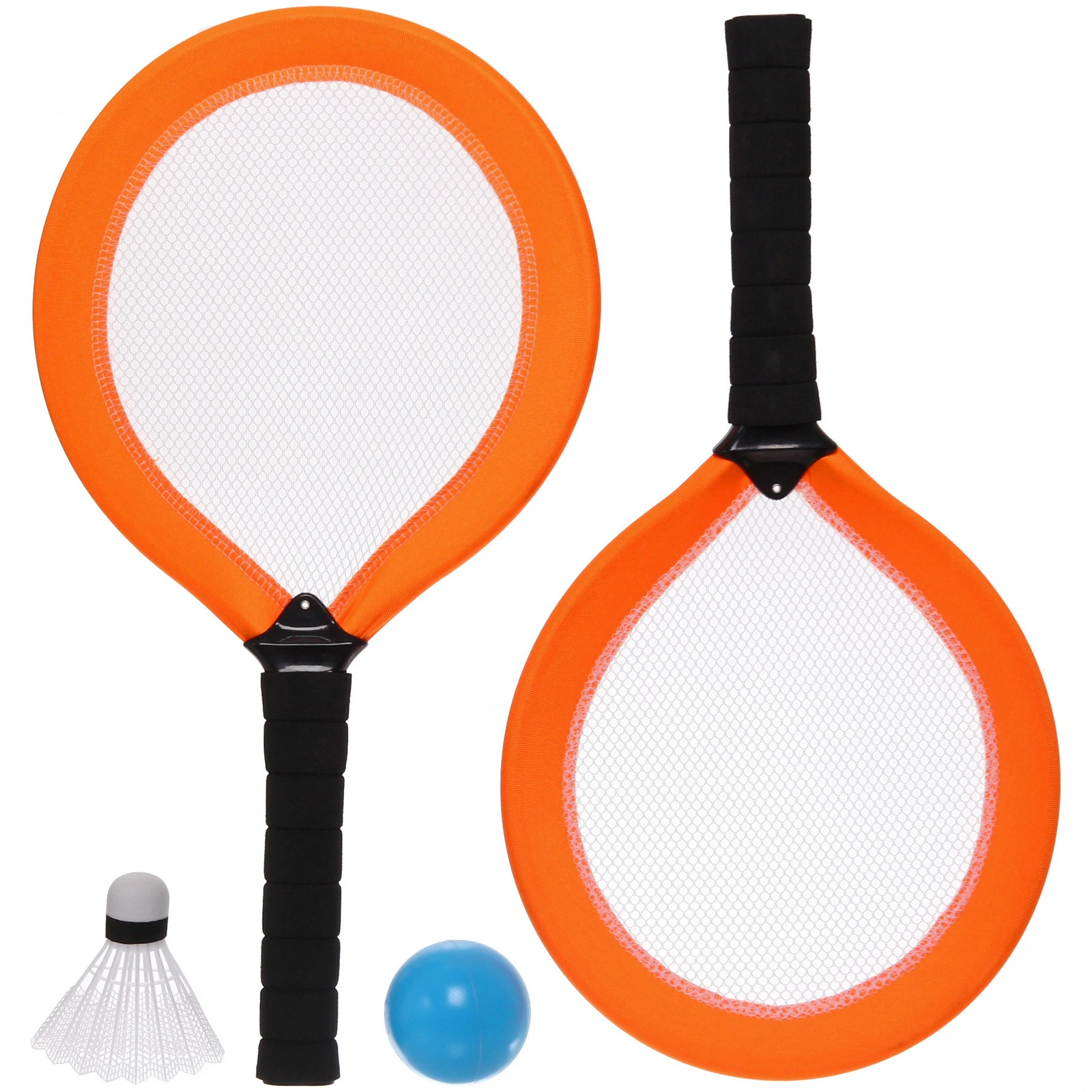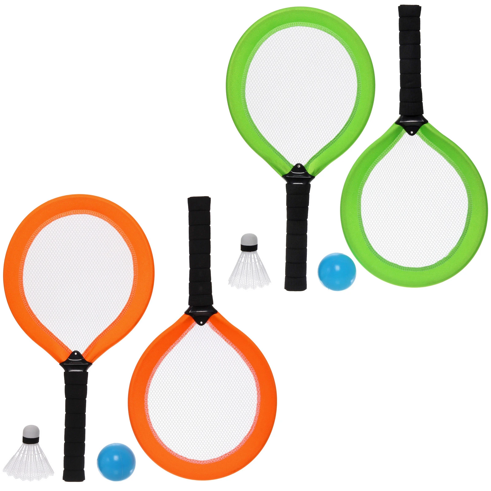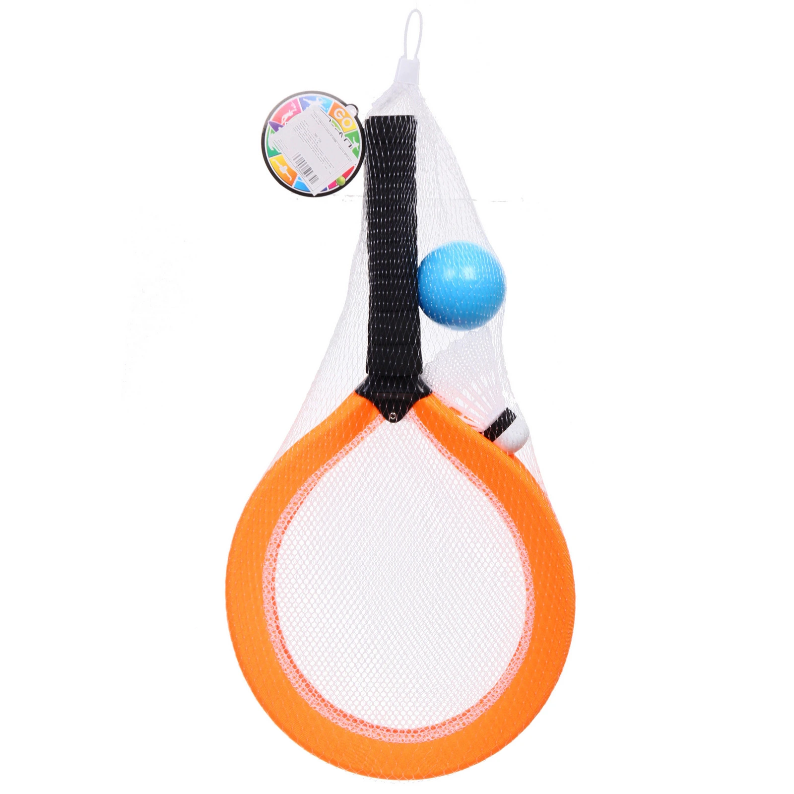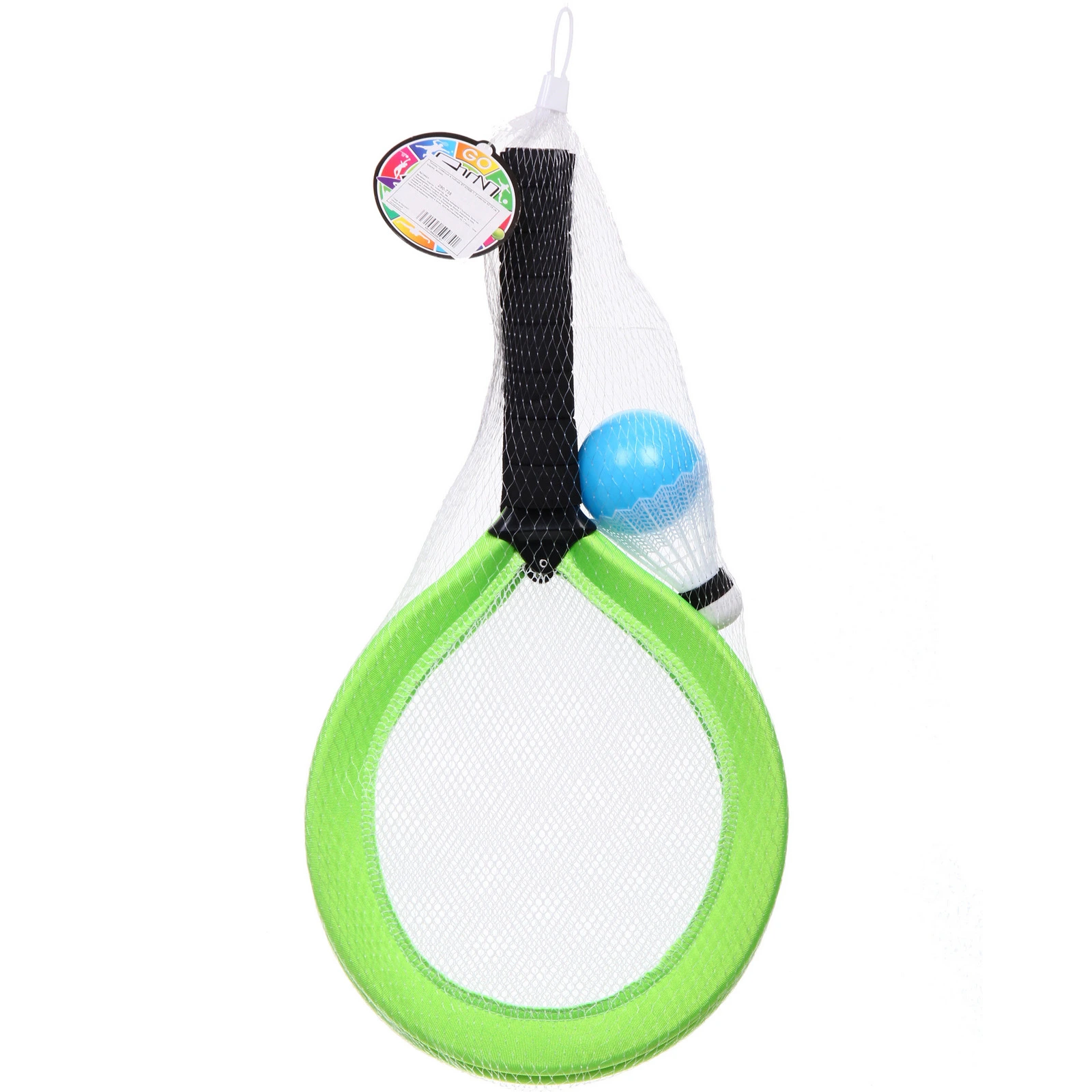 Цвет обода ракеток — в ассортименте. Отгружается один комплект, расцветка определяется случайным образом. Набор поставляется в сетчатой упаковке с удобной петелькой для хранения и транспортировки.