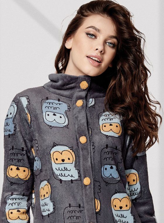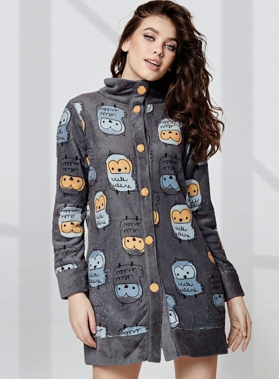 Уютный флисовый халат с дизайном сов — комфорт в каждом движении