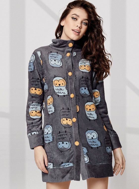 - Стильный дизайн с рисунком сов добавляет оригинальности и делает халат уникальным.