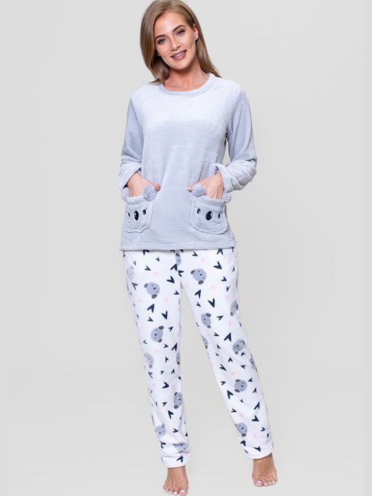 Пижамный комплект из микрофибры, серый с белым, размер L, с принтом мордочек животных, Vienetta