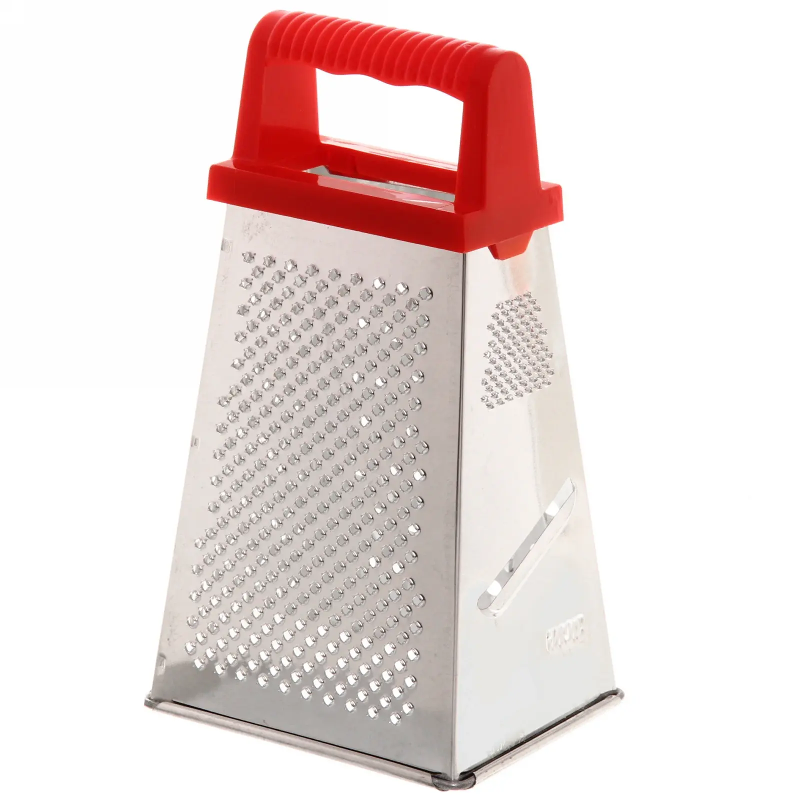 Терка «Т-2» 4-х сторонняя металлическая, 20 см, 4 вида нарезки, красная ручка