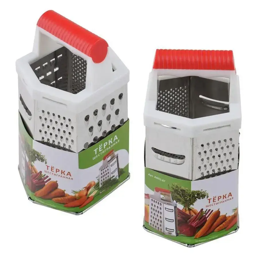 Шестигранная пластиковая терка с 6 рабочими поверхностями — ваш надежный помощник на кухне. Эргономичная ручка и продуманная конструкция обеспечивают комфорт при приготовлении салатов, закусок и горячих блюд.