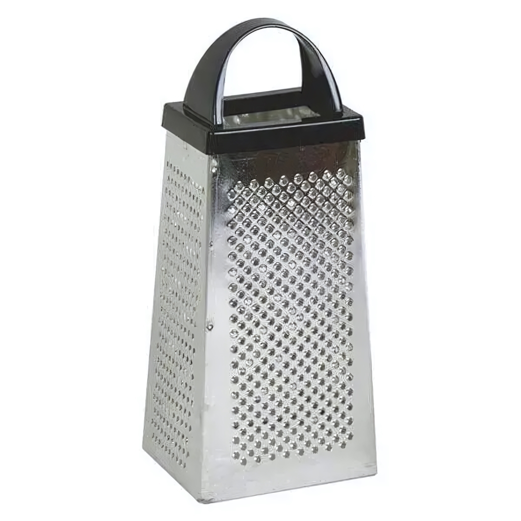Металлическая терка из пищевой нержавеющей стали станет надежным помощником на каждой кухне. Эргономичная ручка с противоскользящим покрытием обеспечивает безопасное натирание даже влажных продуктов, а защитный кожух предотвращает порезы пальцев.