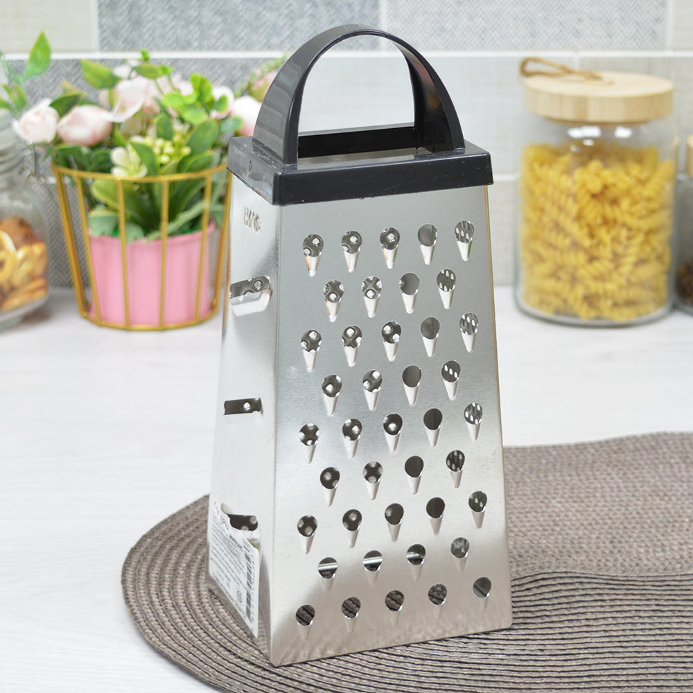 Эта универсальная терка с 4 гранями выполнена из надежной нержавеющей стали, что обеспечивает долговечность и легкость ухода. Ее удобная пластиковая ручка с покрытием предотвращает скольжение и обеспечивает комфорт при использовании. Идеально подходит для натирания овощей, сыра, специй и других продуктов, позволяет быстро подготовить ингредиенты для различных блюд.