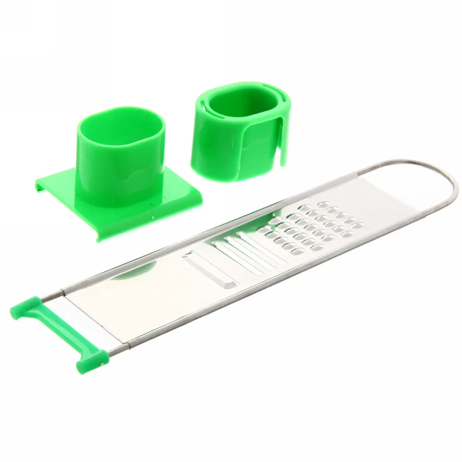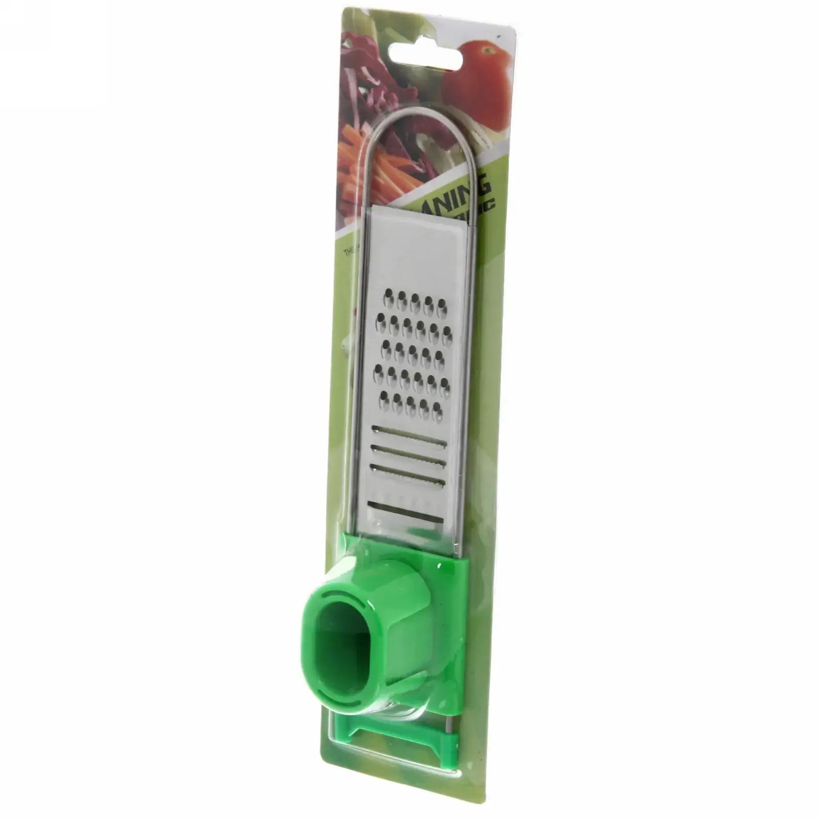 Металлическая рабочая поверхность устойчива к коррозии и подходит для всех видов овощей. Пластиковый держатель надежно фиксируется на краю стола или разделочной доски. Встроенный контейнер объемом 350 мл предотвращает рассыпание нарезанных продуктов. Вес 280 г обеспечивает устойчивость во время работы.
