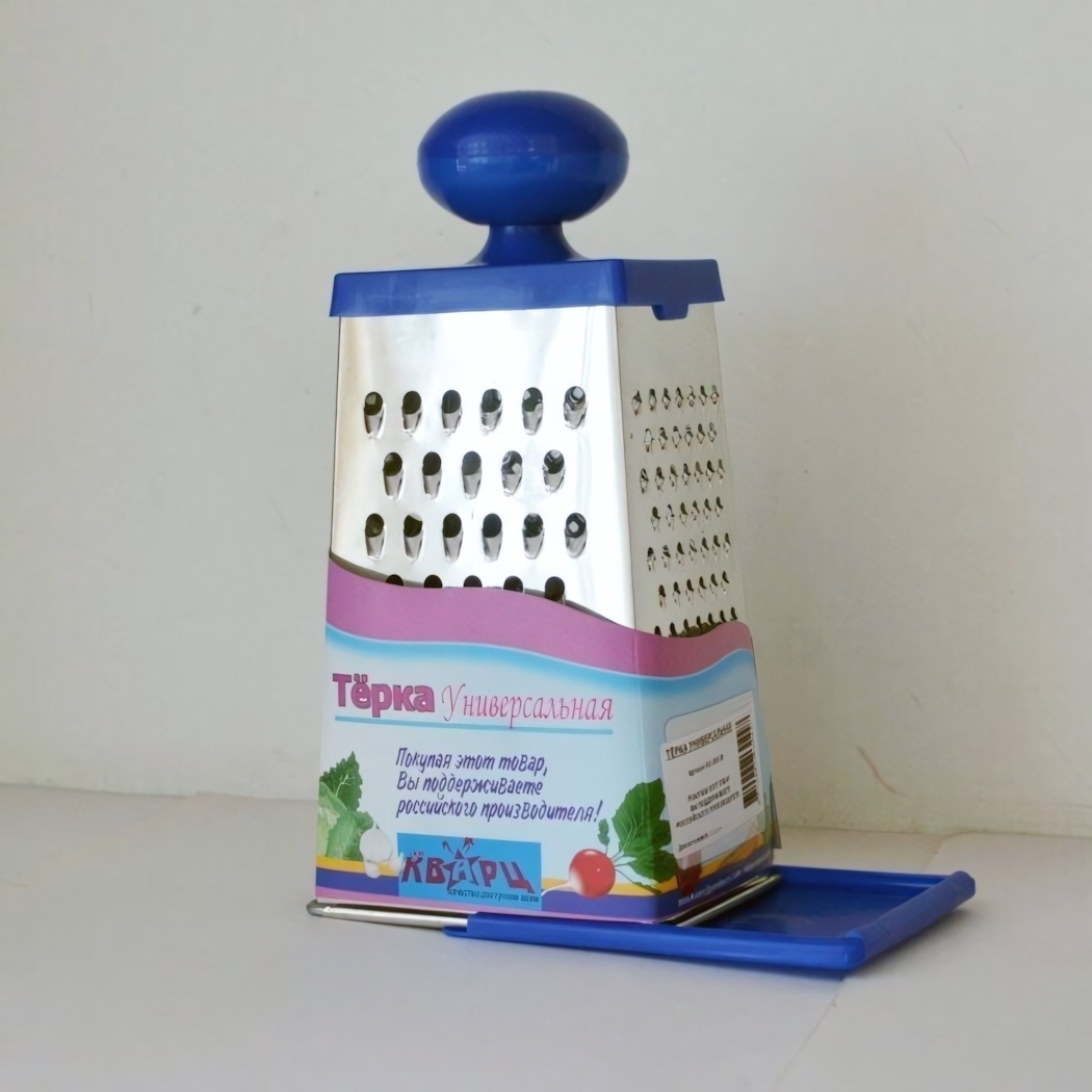 Эта практичная терка станет вашим надежным помощником на кухне. Четыре различных рабочих поверхности позволят легко справиться с любыми задачами по измельчению продуктов.