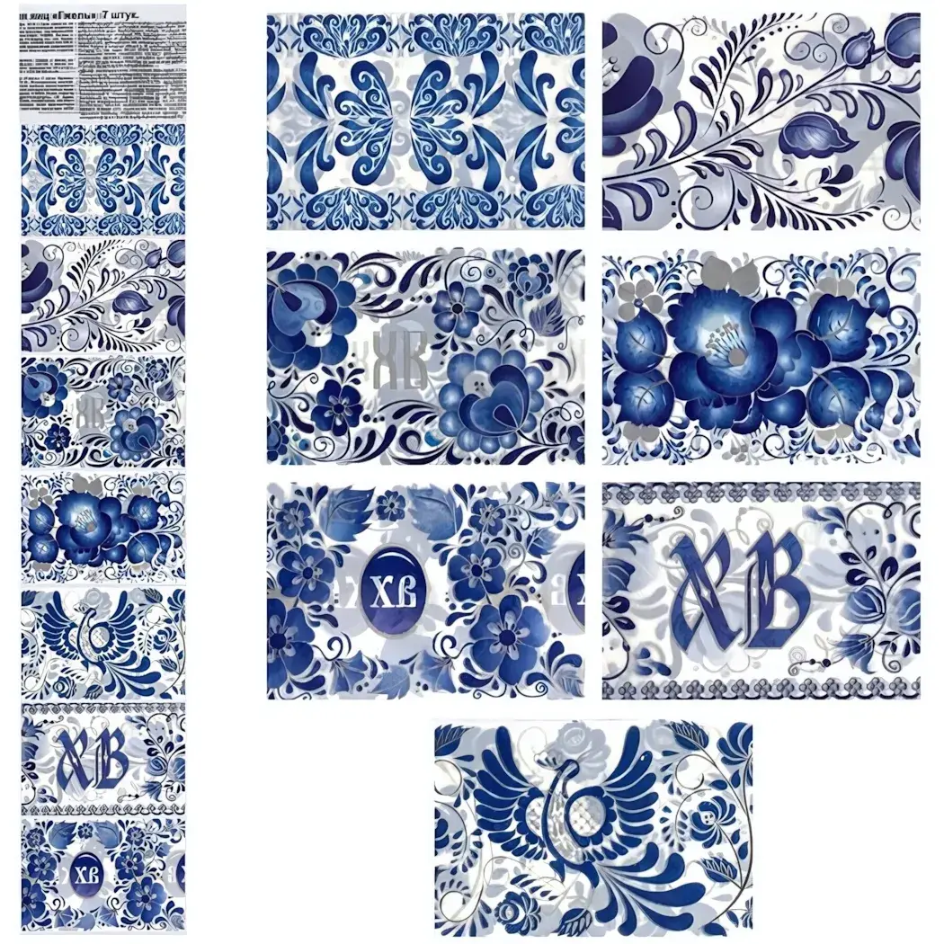 Использование термоэтикеток очень просто. Вам нужно лишь разрезать пленку на отдельные этикетки, надеть их на вареные яйца и опустить яйцо в кипящую воду на 3-5 секунд. После этого ваши яйца будут украшены красивыми узорами в стиле «Гжель», что придаст им особый шарм и привлекательность.