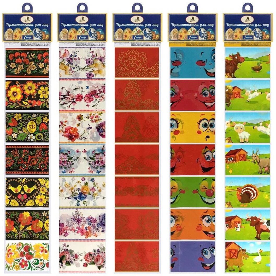 Термоэтикетки для яиц помогают создать праздничное оформление всего за несколько секунд. Вам не нужно тратить время на сложные техники окрашивания — достаточно надеть этикетку на варёное яйцо и опустить его в кипящую воду. Плёнка плотно облегает поверхность, формируя яркий и аккуратный декор к Светлому празднику.