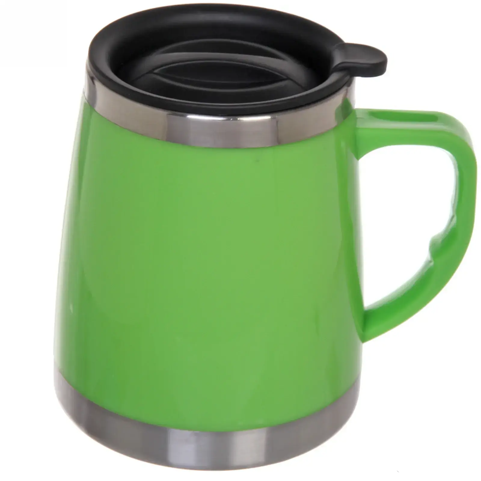 Зелёная термокружка с двойными стенками сохраняет тепло до 6 часов, а холод — до 12. Удобная форма с ручкой и герметичной крышкой делает её незаменимым спутником для офиса, путешествий и активного отдыха.