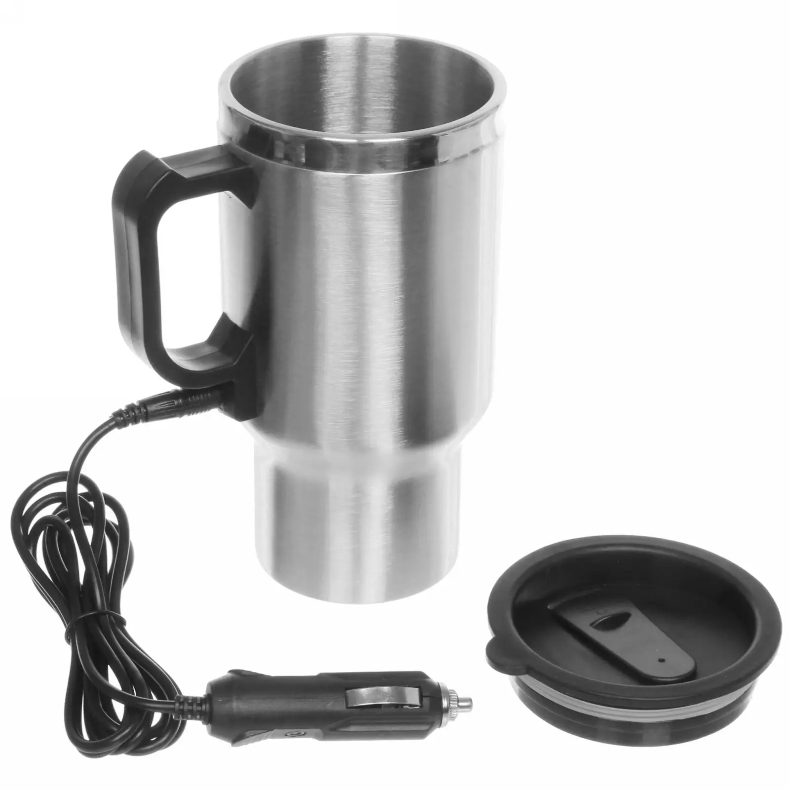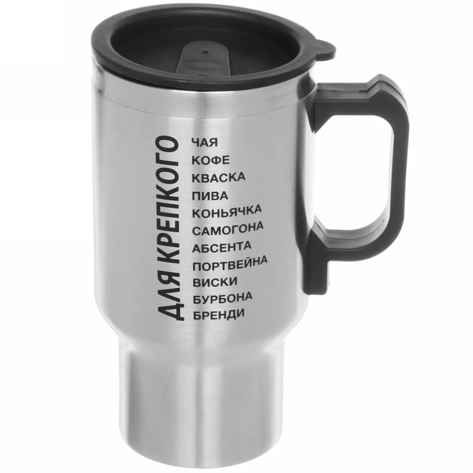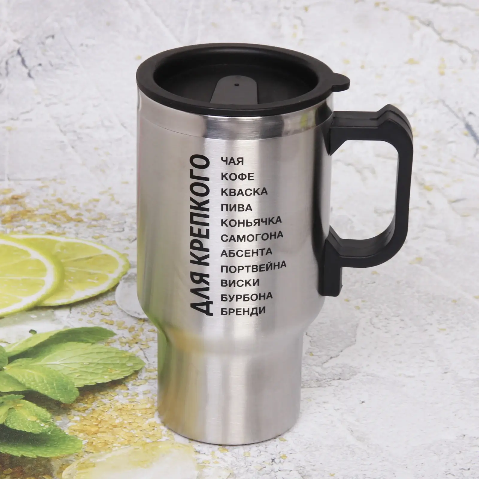 Термокружка с подогревом от прикуривателя «Для крепкого...», 450 мл, металл/пластик, серебристая