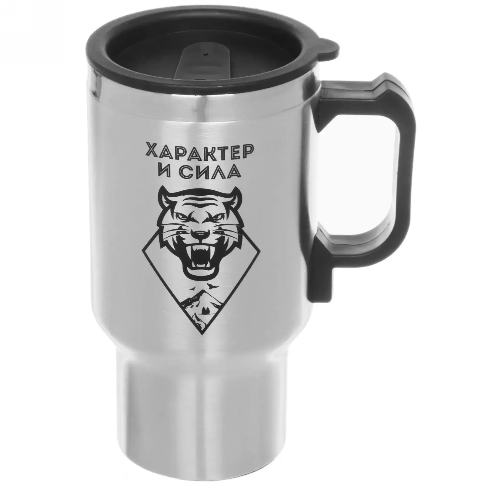 Представляем вам термокружку объемом 450 мл с подогревом от прикуривателя, которая станет вашим незаменимым спутником в поездках и на отдыхе. Эта кружка не только удобна, но и стильна, благодаря уникальному дизайну с изображением тигра и надписью «ХАРАКТЕР И СИЛА». Она идеально подходит для тех, кто ценит комфорт и качество в каждой детали.