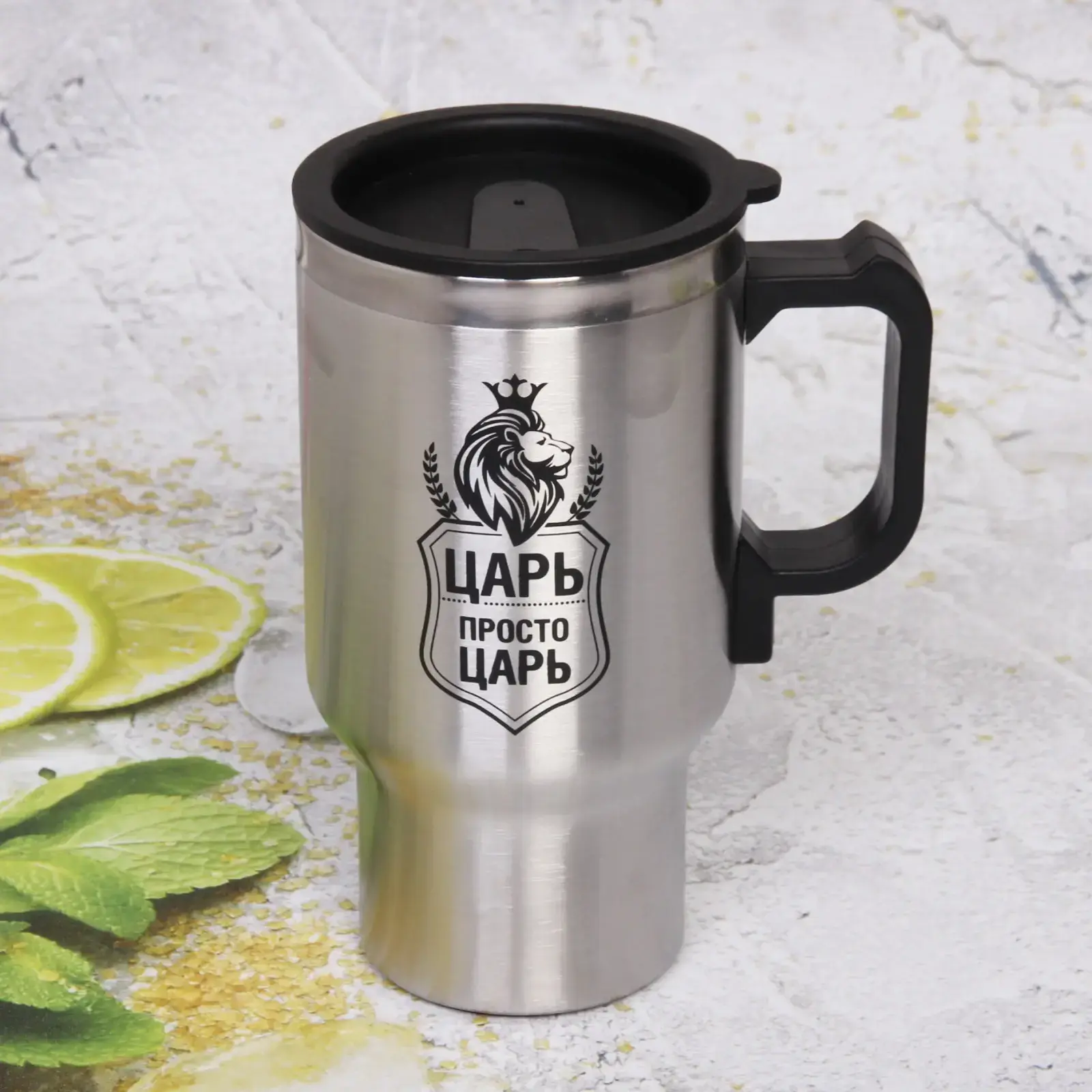 Представляем вам термокружку объемом 450 мл с подогревом от прикуривателя, которая станет вашим незаменимым спутником в поездках. Эта кружка не только сохраняет ваши напитки горячими, но и добавляет стильный акцент в ваш автомобиль благодаря уникальному дизайну с изображением льва и надписью "Царь просто Царь". С ней вы сможете наслаждаться любимыми горячими напитками в любое время, не беспокоясь о том, что они остынут.