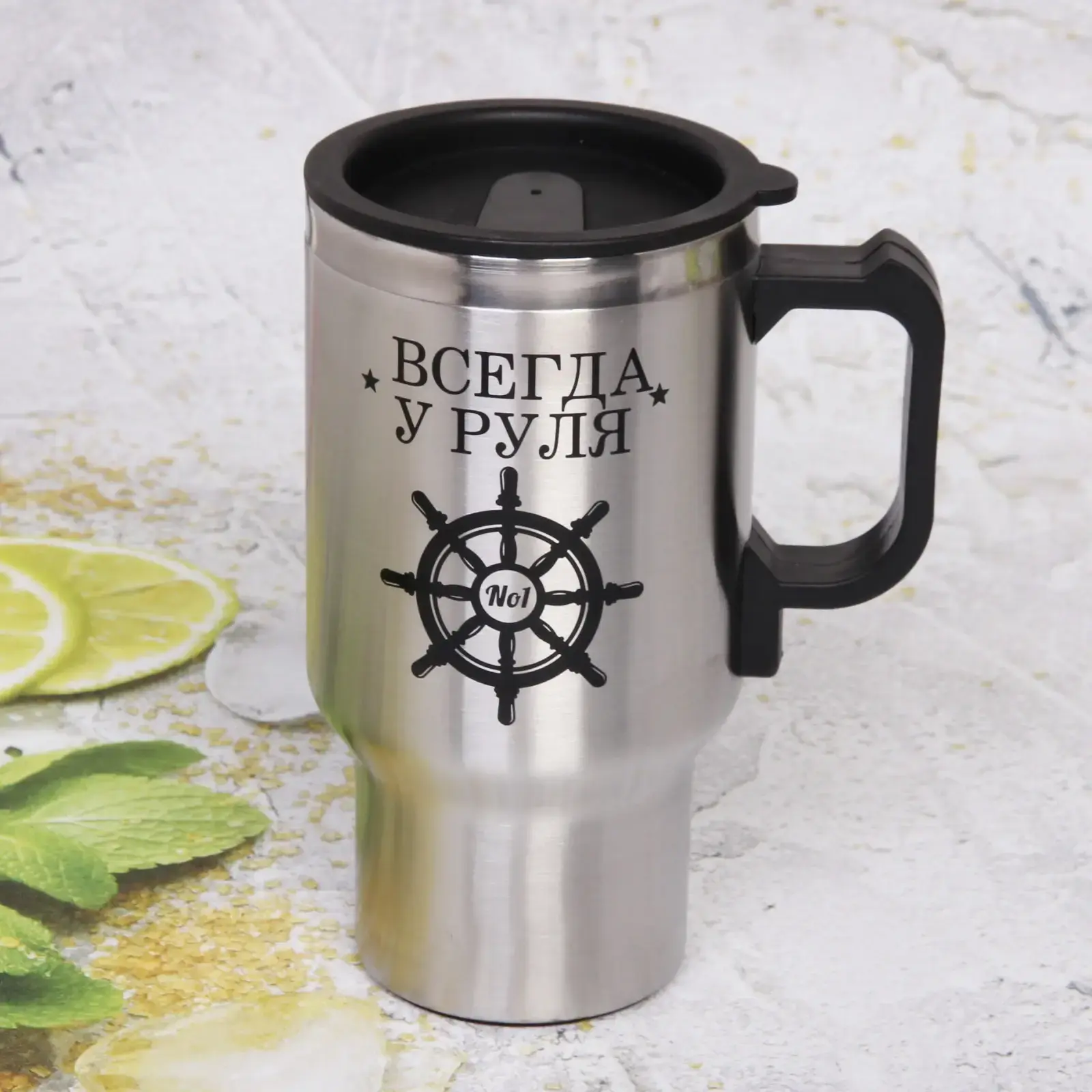 Представляем вам термокружку объемом 450мл с подогревом от прикуривателя, которая станет незаменимым аксессуаром для автолюбителей и любителей активного отдыха. С ее помощью вы сможете наслаждаться горячими напитками в любое время, будь то длительная поездка или пикник на природе. Элегантный дизайн с надписью «ВСЕГДА У РУЛЯ» и изображением штурвала подчеркивает морскую тематику и стильность.