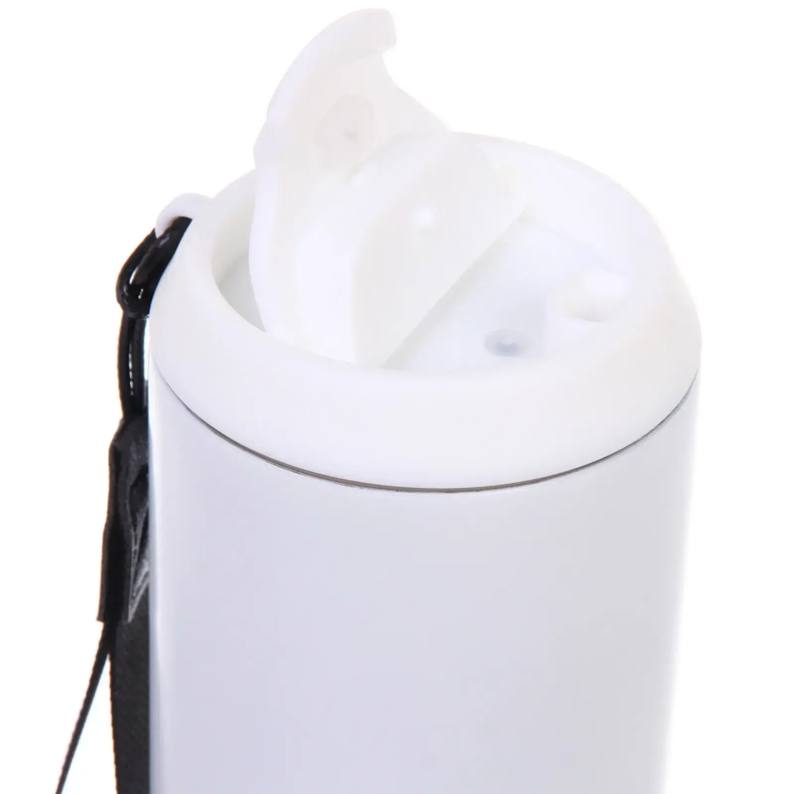 Термокружка имеет объем 500 мл, что позволяет брать с собой достаточное количество любимого напитка. Она идеально подходит для использования на работе, в поездках или во время прогулок. Закручивающаяся крышка с отверстием для питья обеспечивает удобство, а черный текстильный ремешок позволяет легко переносить кружку.