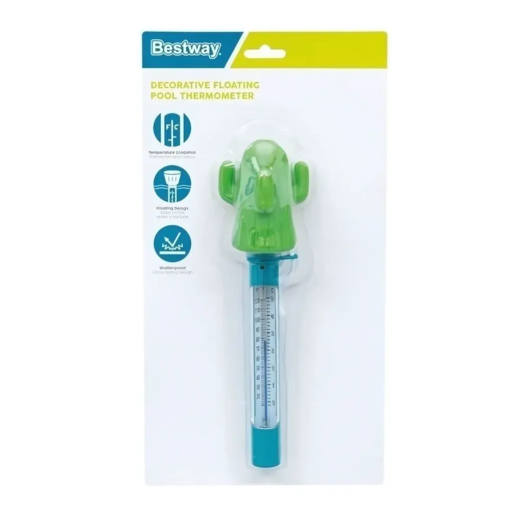 Термометр имеет уникальный дизайн в форме кактуса, что делает его не только функциональным, но и стильным элементом вашего бассейна. Он легко держится на поверхности воды и всегда на виду, что исключает возможность его потери. Удобная шкала позволяет быстро и точно считывать температуру в градусах Цельсия и Фаренгейта.