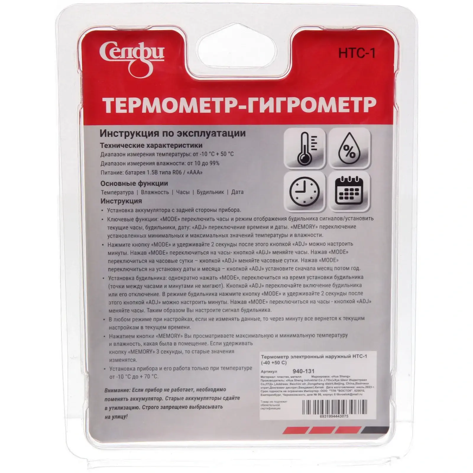 Размеры устройства составляют 102 x 92 x 22 мм, а вес — 100 г, что делает его компактным и легким для переноски. Корпус выполнен из прочного пластика и стекла, что обеспечивает долговечность и надежность. Не упустите возможность улучшить свой быт с термометром-гигрометром HTC-1!
