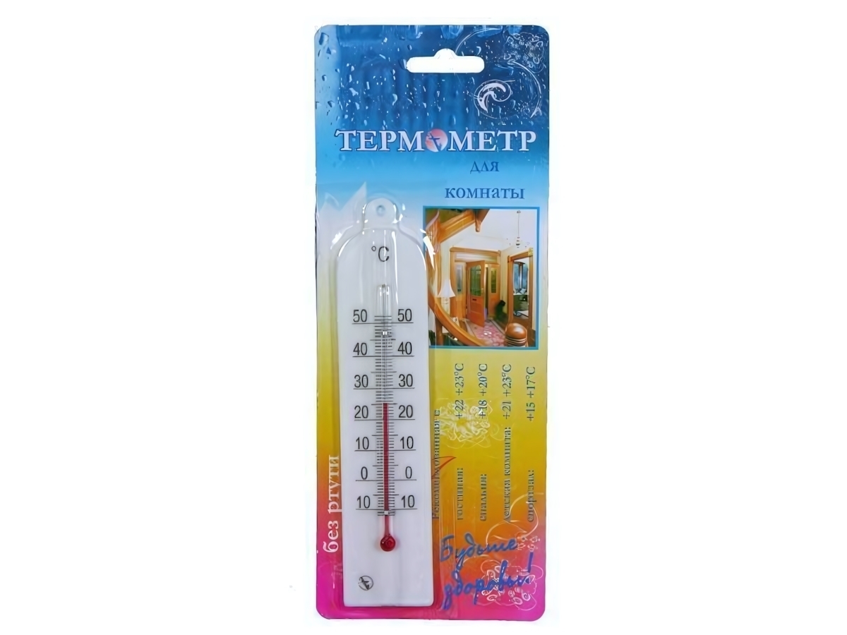 Термометр изготовлен из качественных материалов, устойчивых к повседневным нагрузкам. Белый цвет корпуса и четкая градуировка от 0 до 50 °C обеспечивают легкость считывания данных.