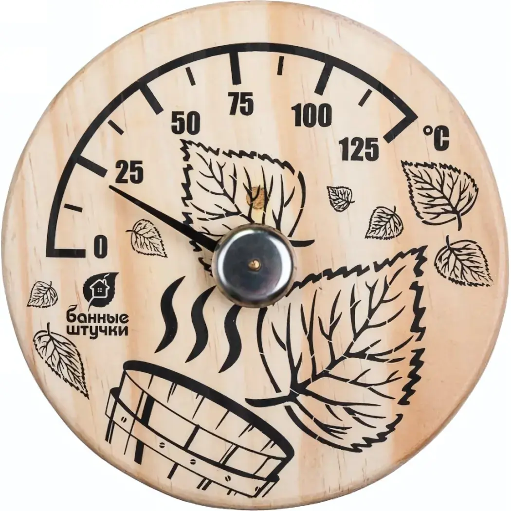 Изготовлен из натуральной липы, известной своей устойчивостью к влаге и высоким температурам. Металлическая стрелка обеспечивает точные показания, а деревянная основа безопасна для здоровья.