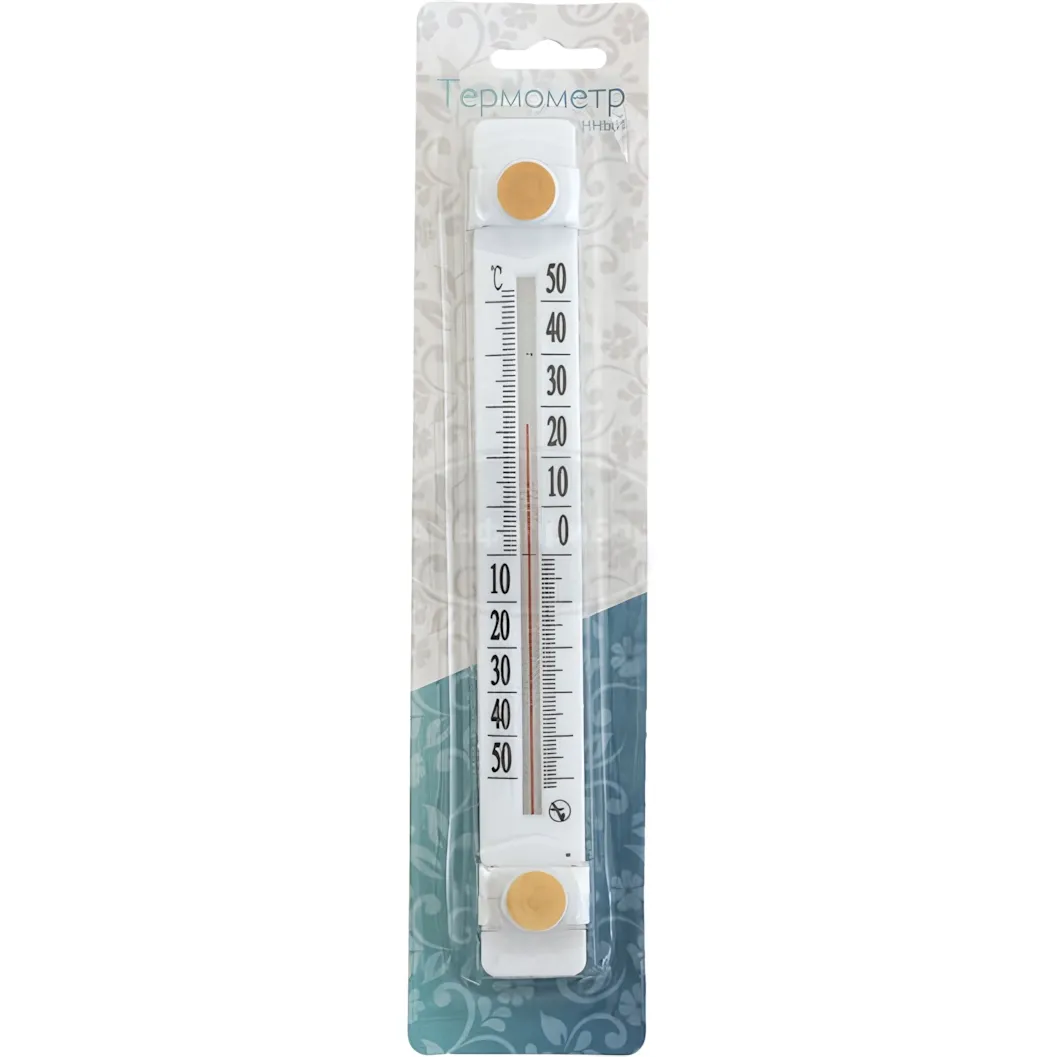 Термометр имеет размеры, удобные для размещения на окне, и выполнен из прочных материалов, что гарантирует его долговечность. Упаковка термометра оформлена в светлом цвете с орнаментом, что делает его привлекательным для покупки. Не упустите возможность сделать свой дом более комфортным с помощью этого простого, но эффективного устройства!