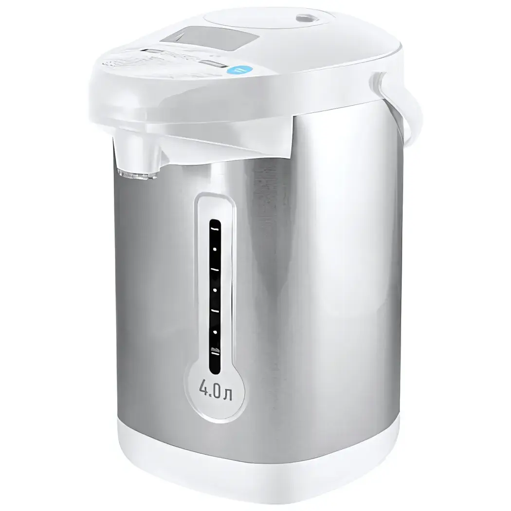 Термопот выполнен из качественных материалов: металл и пластик, что гарантирует его долговечность. Размеры устройства позволяют легко разместить его на кухне или столе, а стильный дизайн впишется в любой интерьер. Объем в 4 литра позволяет готовить достаточное количество горячих напитков для всей семьи или компании.