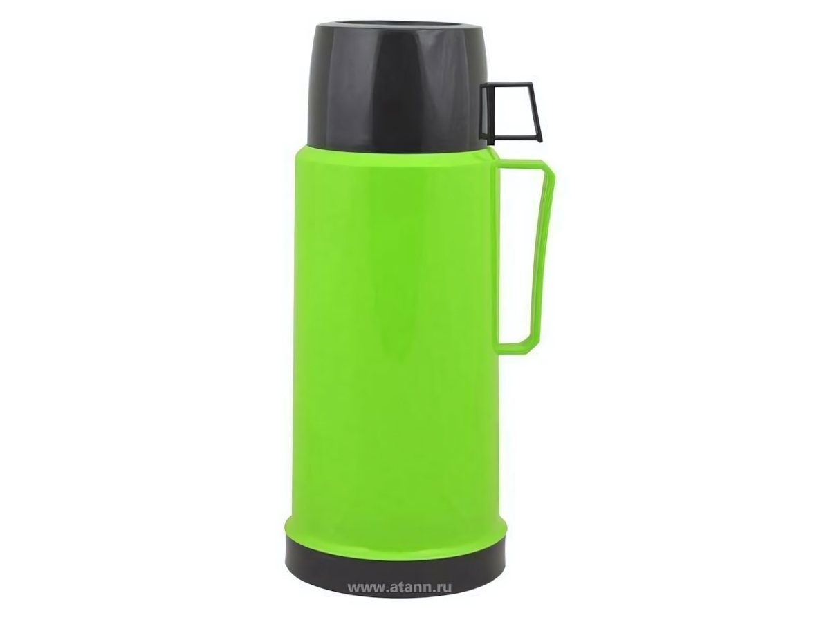 Термос 1л с стеклянной колбой, пластиковый корпус зеленый/черный