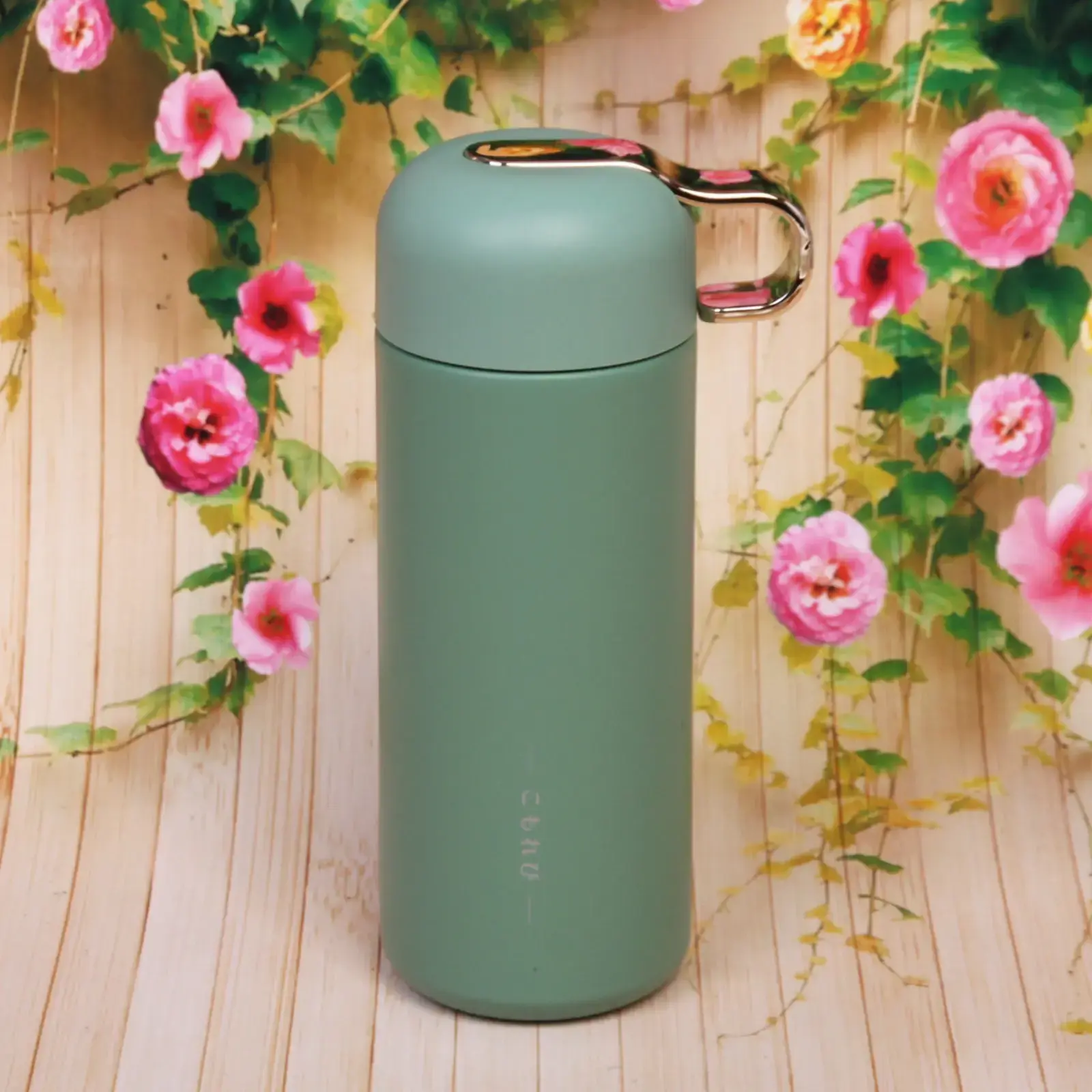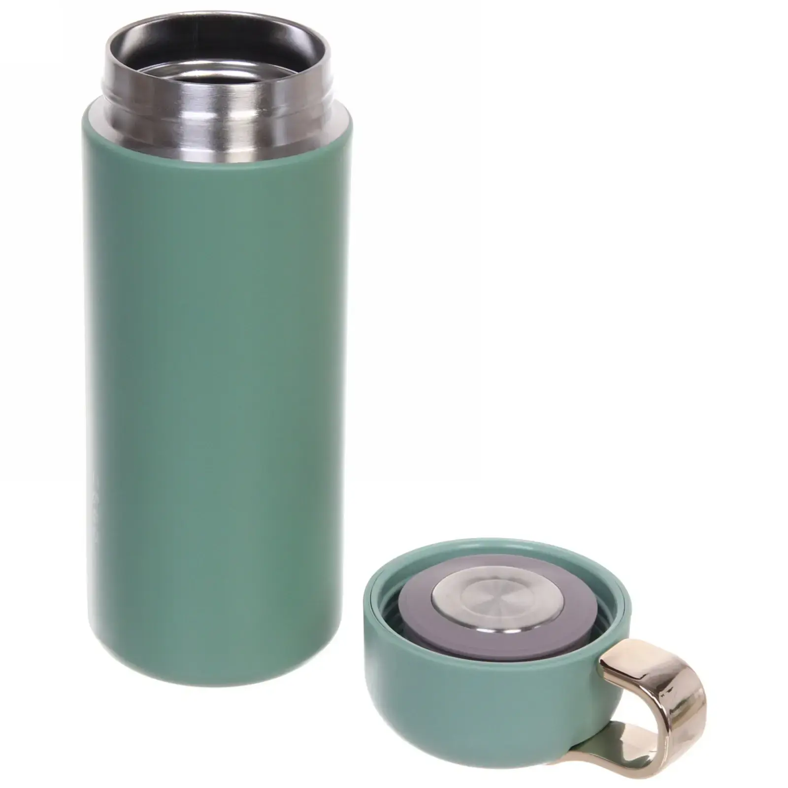 Вакуумный термос «Настроение» сохраняет температуру напитков до 12 часов, сочетая функциональность и элегантный дизайн. Матовая поверхность и золотистые акценты создают стильный акцент в повседневном использовании.