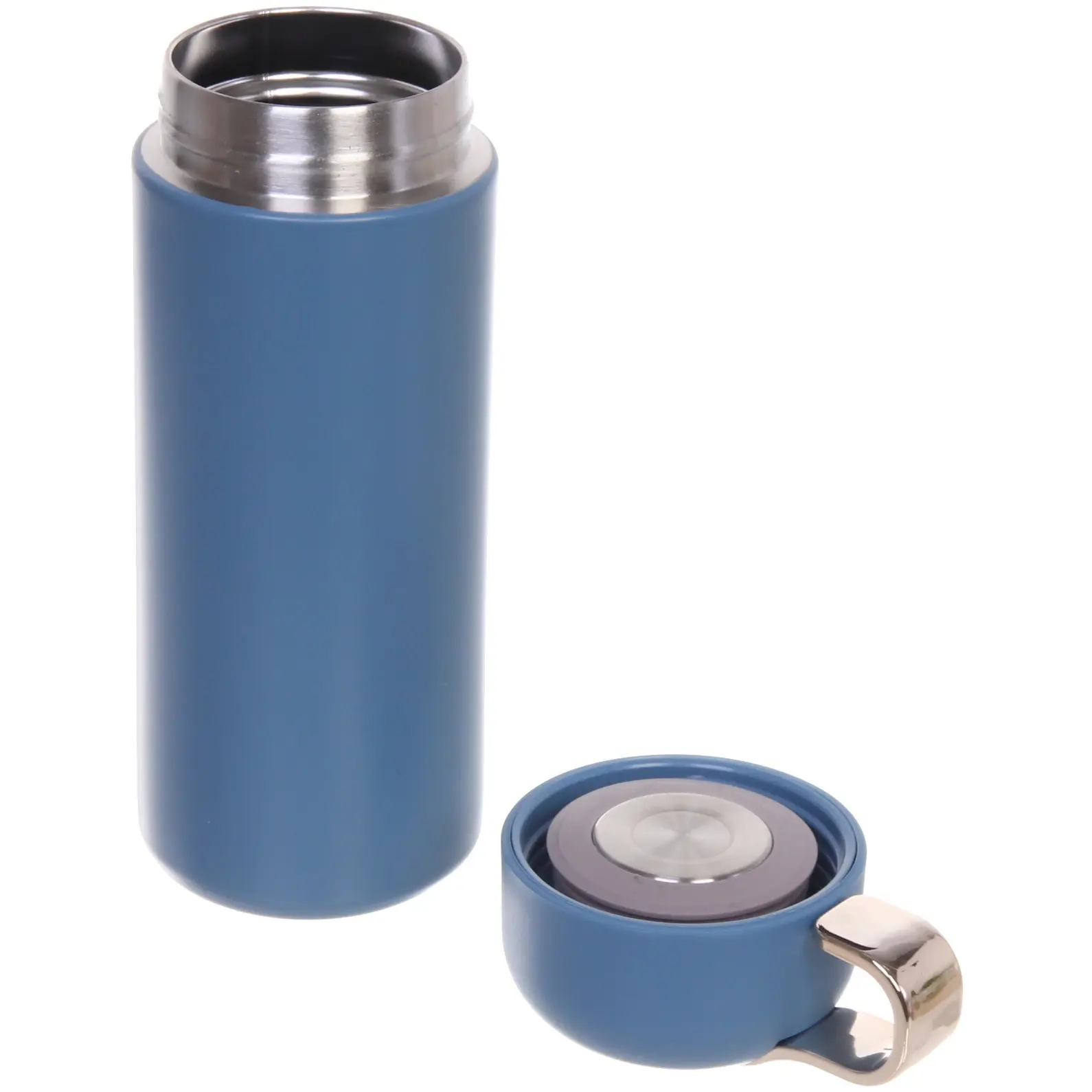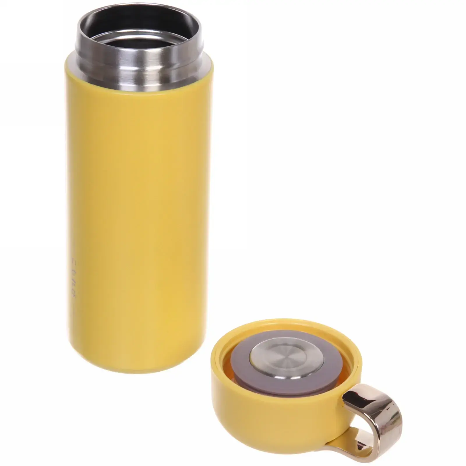 Объём 350 мл оптимален для переноски в сумке или рюкзаке. Внешний диаметр — 7.5 см, высота — 22 см. Совместим с горячими напитками до 100°C и холодными до -20°C. Перед первым использованием рекомендуется промыть с нейтральным моющим средством.