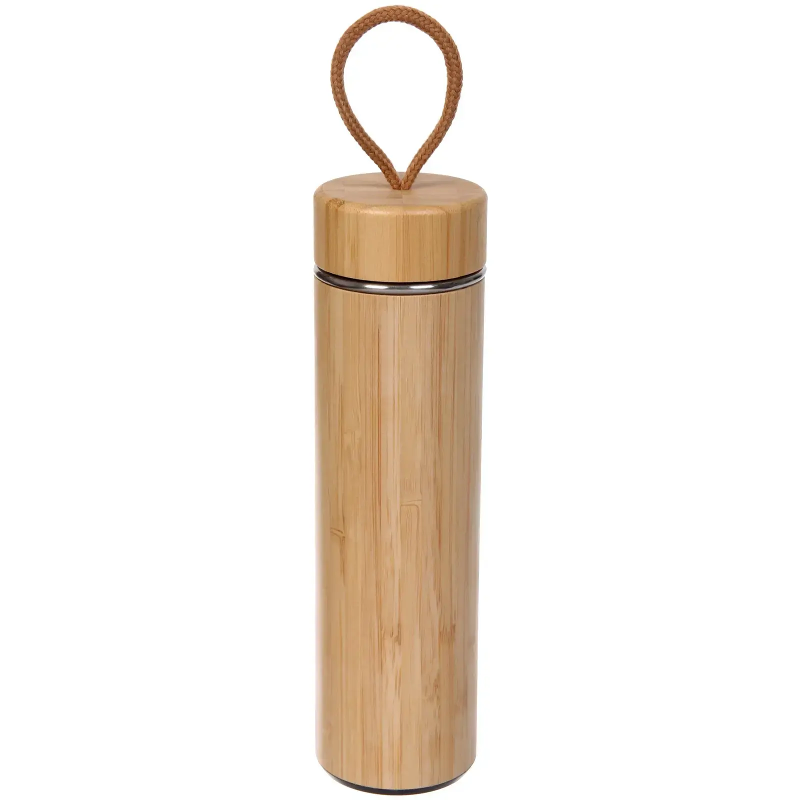 Термос 500 мл с бамбуковым покрытием и удобной петлей, металлический корпус, для горячих напитков