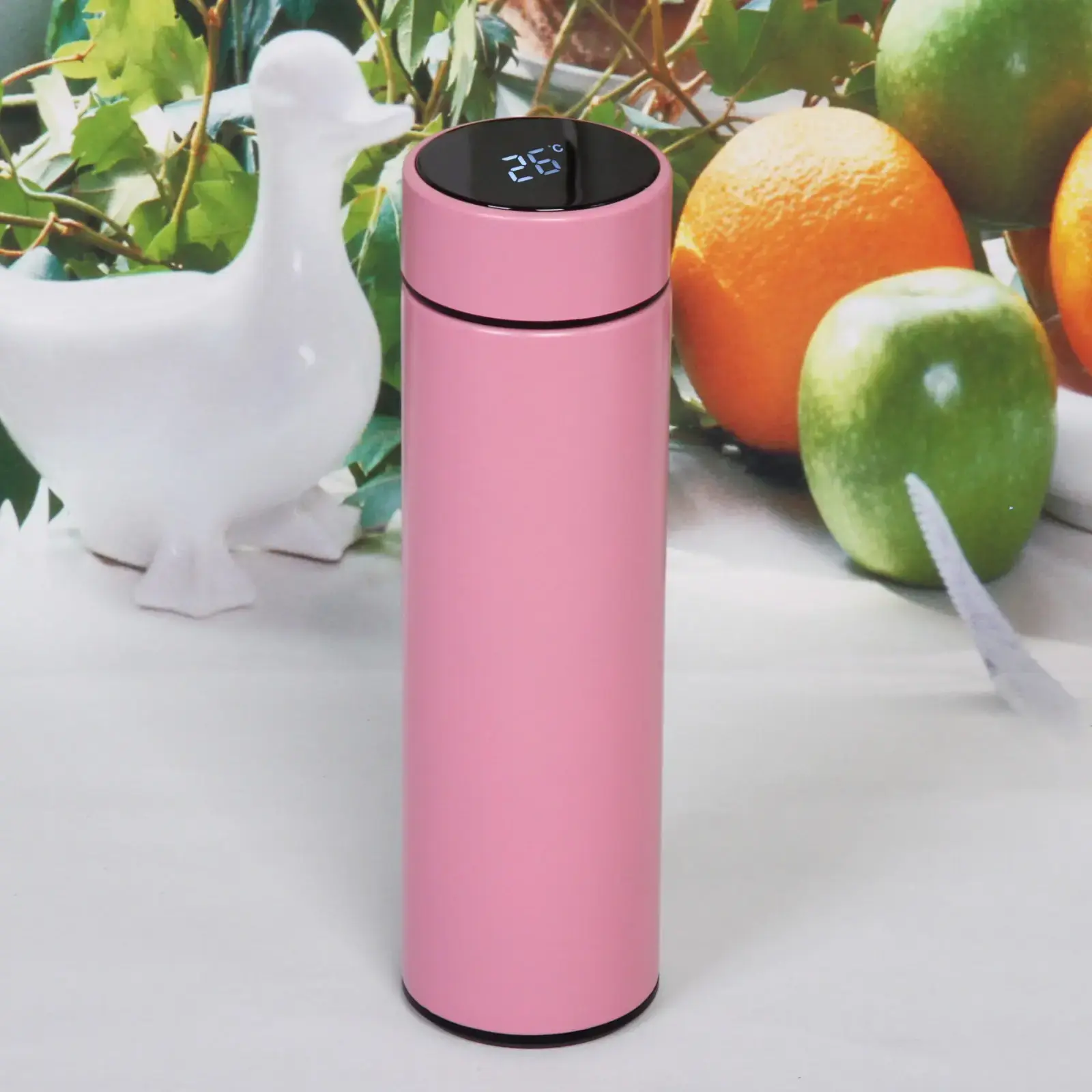 Термос с датчиком температуры 500 мл, металл и пластик, розовый, в комплекте сито-фильтр