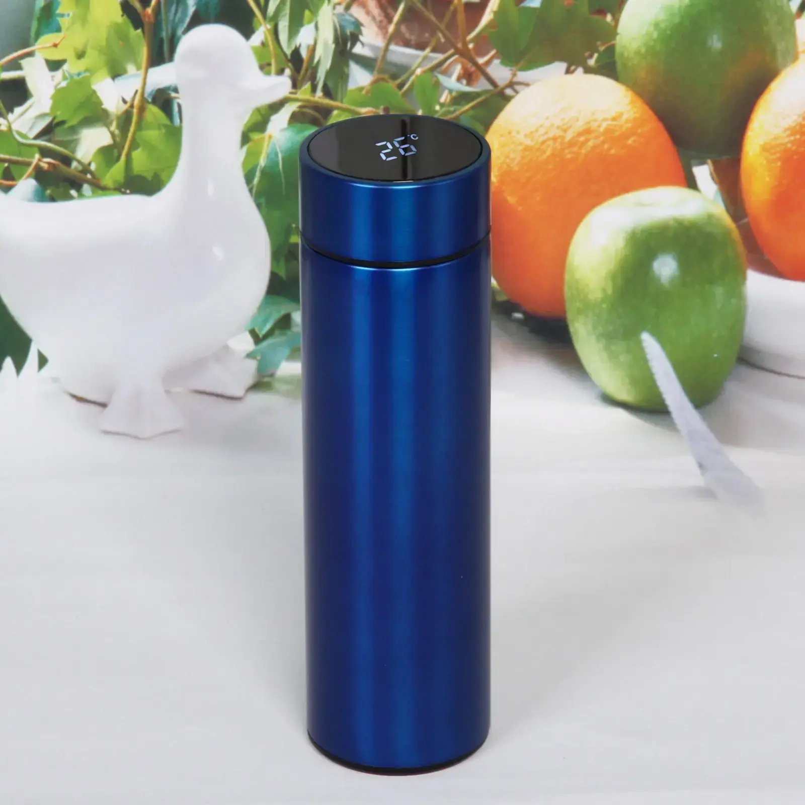 Объем термоса составляет 500 мл, что достаточно для одной порции горячего чая или кофе. Материалы, из которых он изготовлен, включают металл и пластик, что обеспечивает легкость и прочность конструкции. Датчик температуры работает от батареек, которые легко заменяются. Размеры термоса позволяют удобно помещать его в автомобильные подстаканники и сумки.