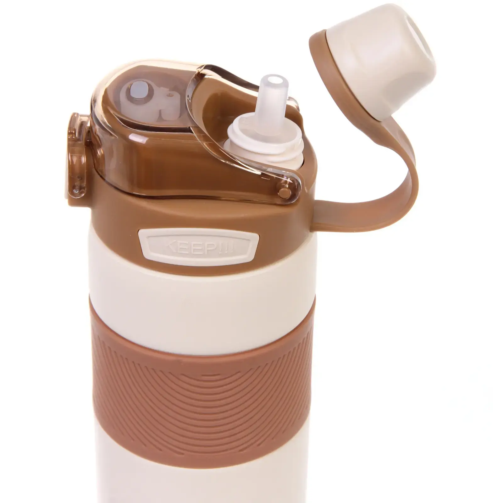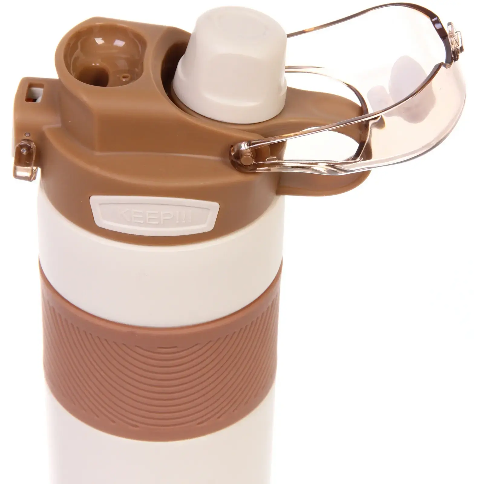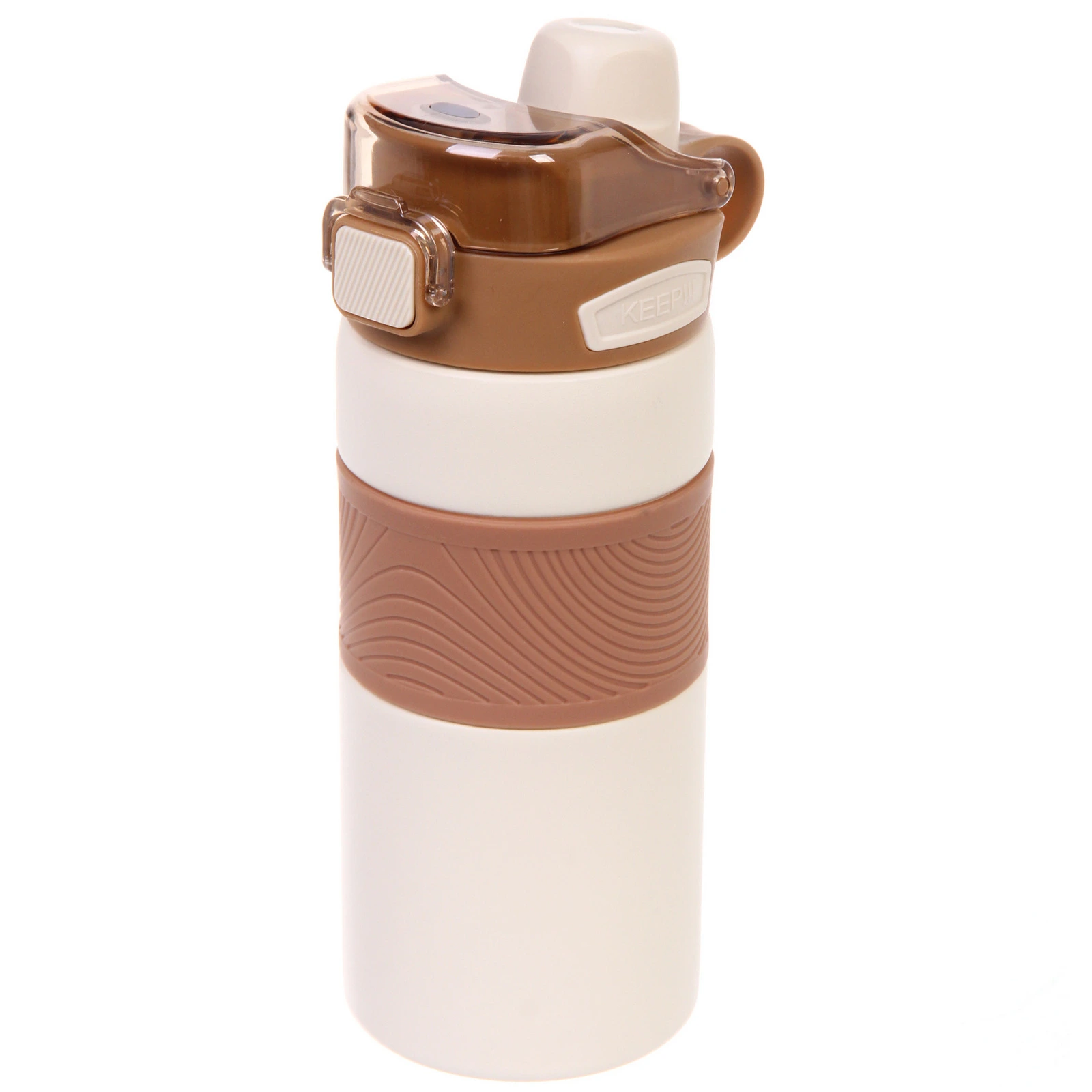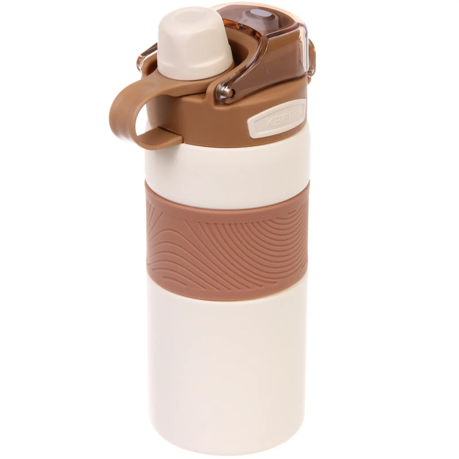 - Эстетичный дизайн: молочный цвет с коричневыми акцентами делает термос стильным аксессуаром.
