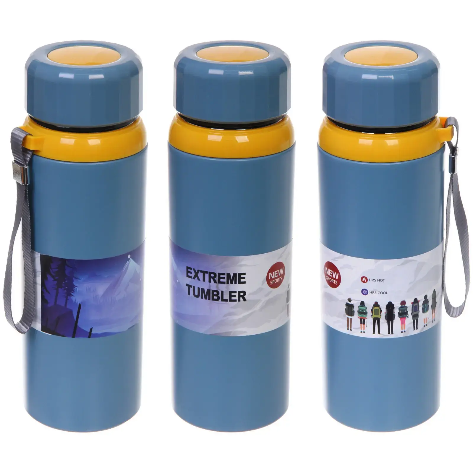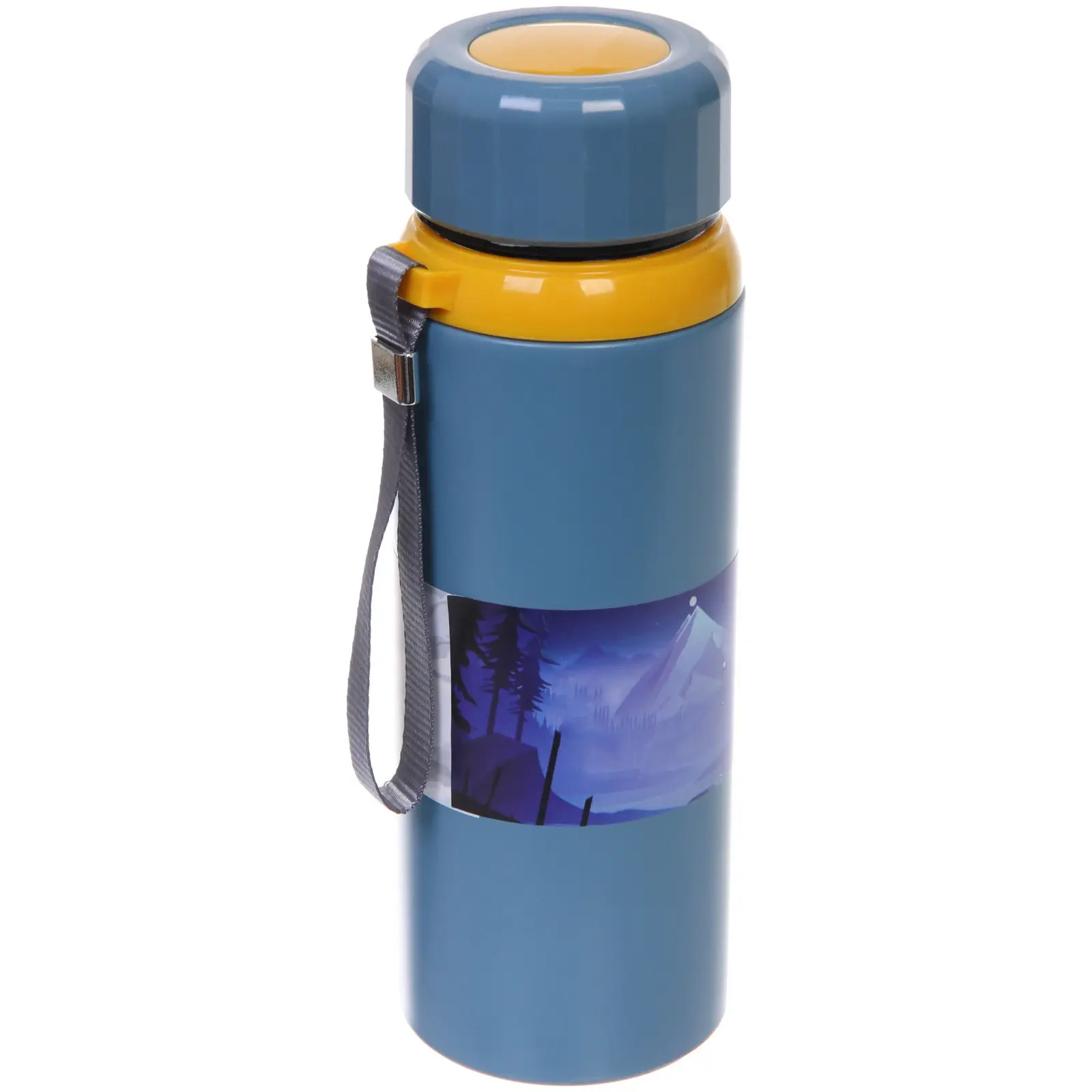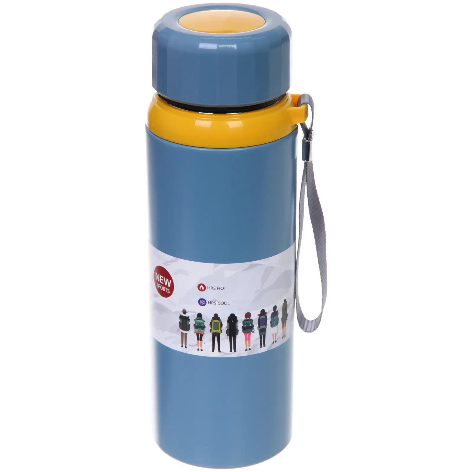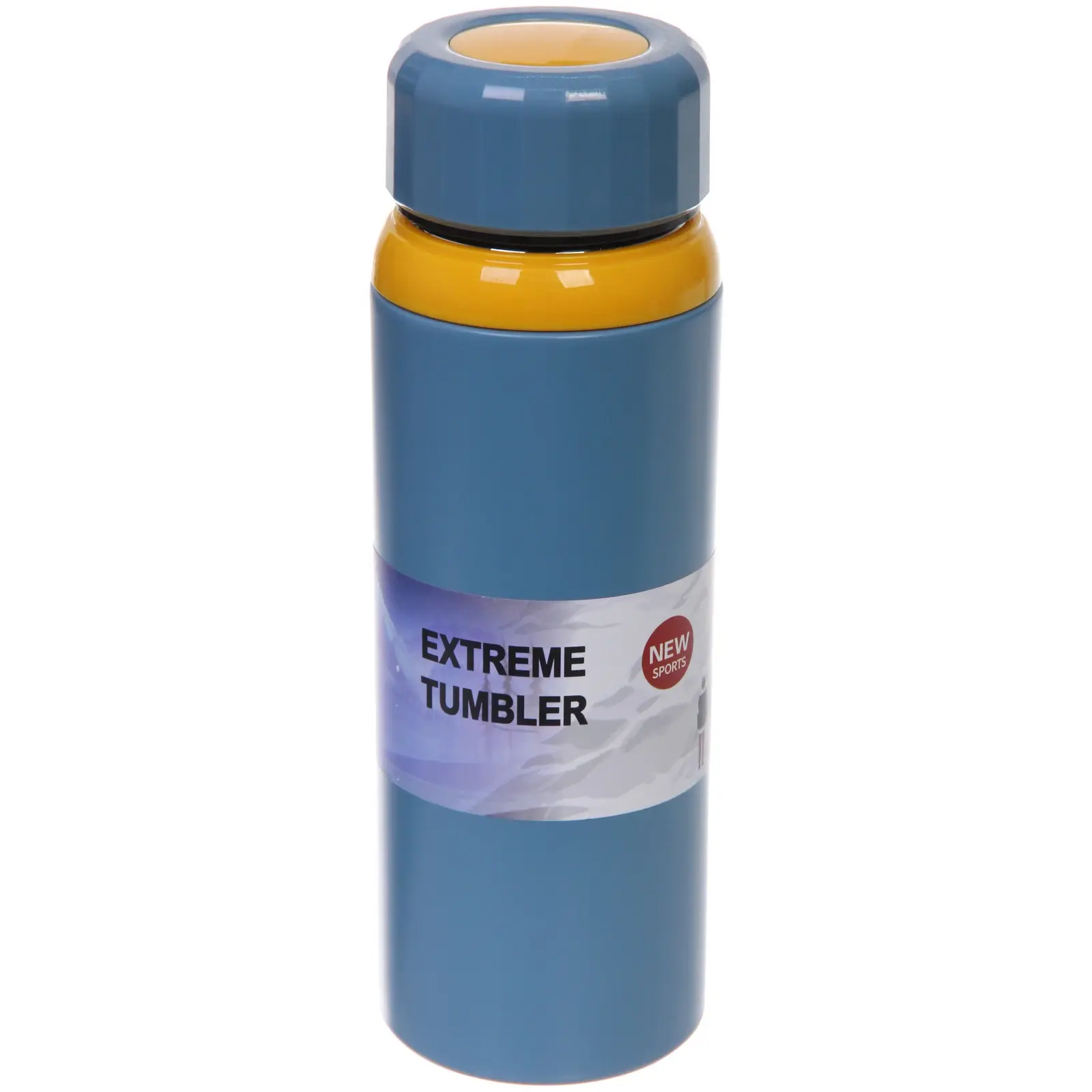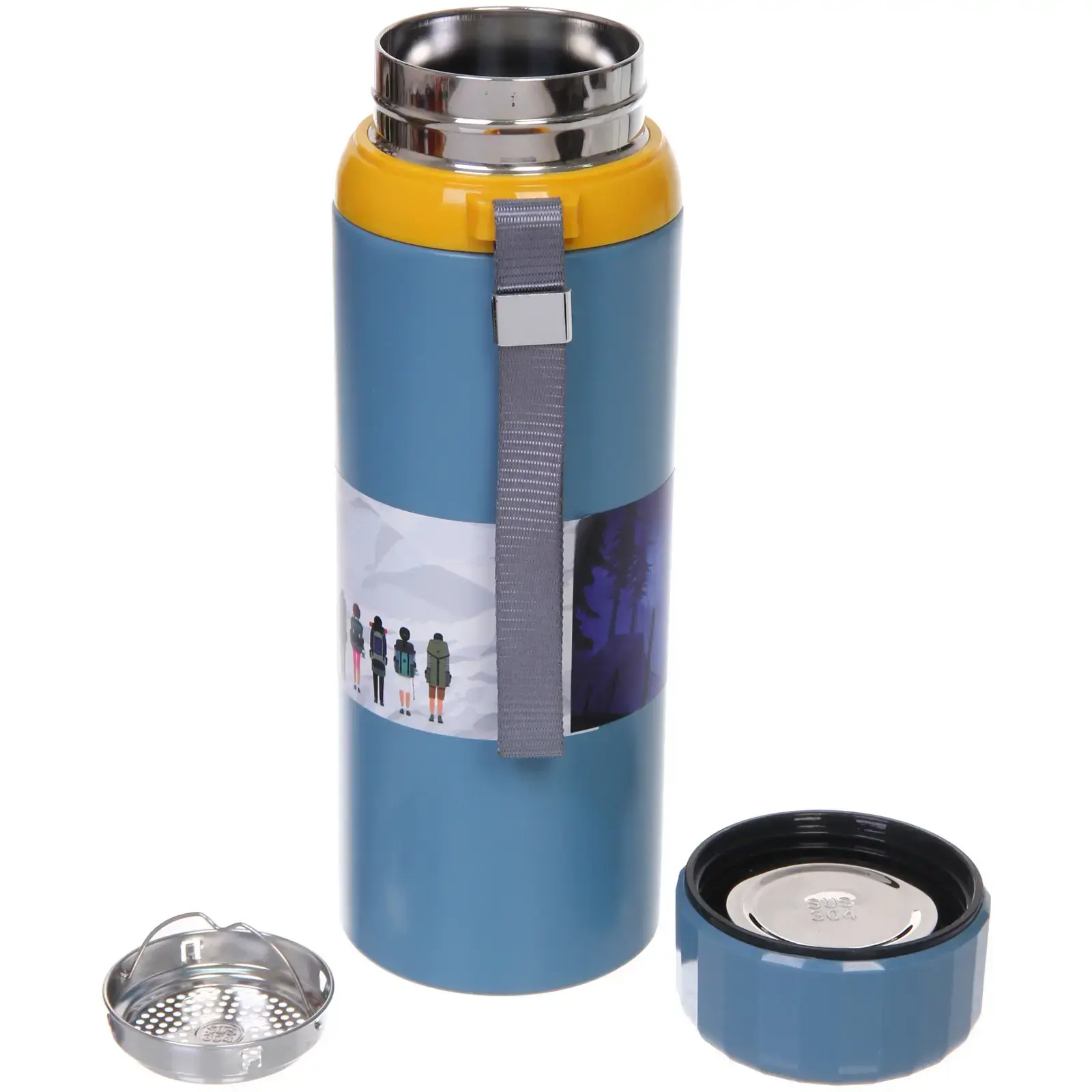 Термос имеет цилиндрическую форму и выполнен в голубом цвете с желтой крышкой. Его размеры и объем делают его идеальным для использования в поездках, на пикниках или в офисе. Не упустите возможность сделать свой день более комфортным с термосом «Эверест»!