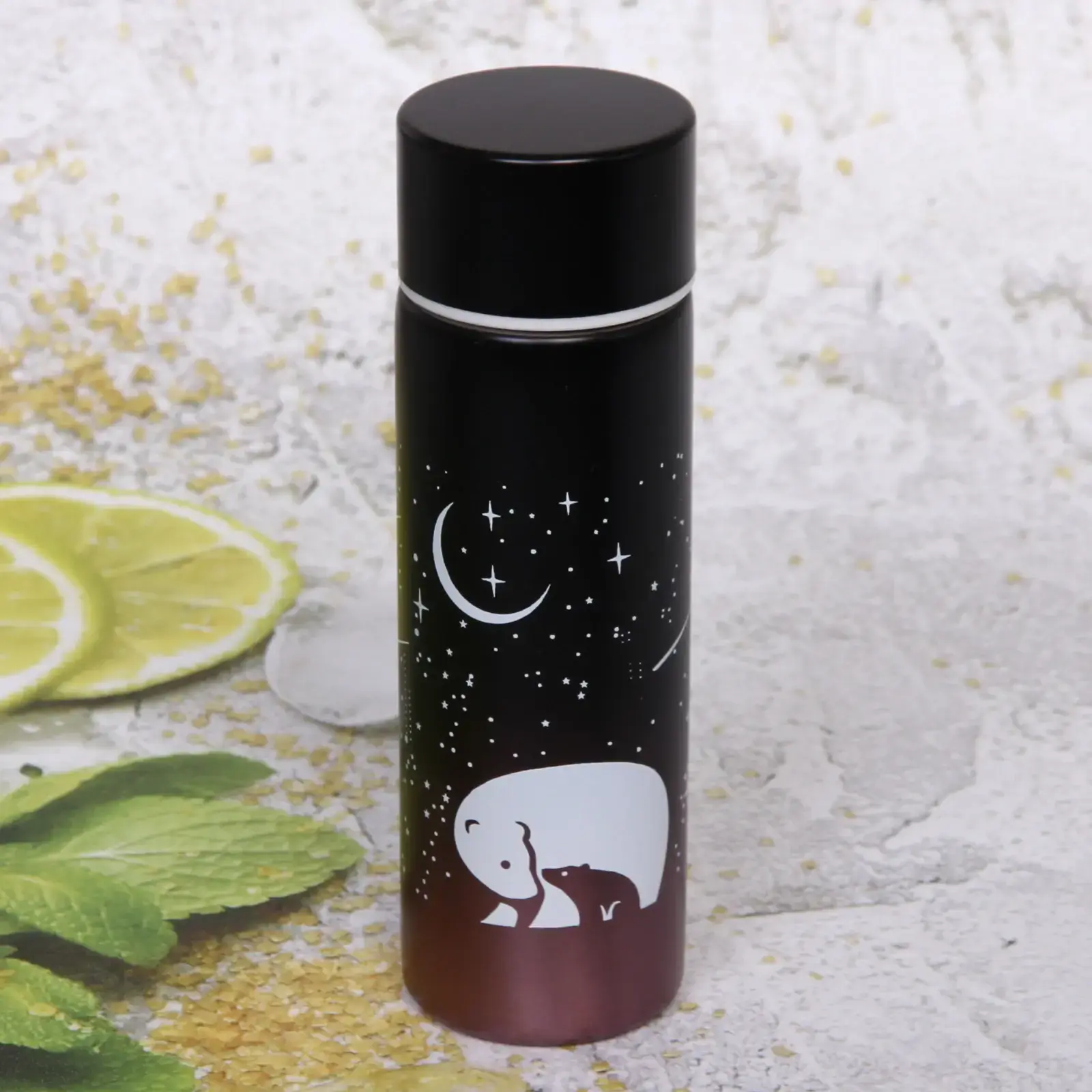 Термос выполнен из качественного металла и пластика, что обеспечивает его легкость и прочность. Объем составляет 150 мл, что идеально подходит для одной порции напитка. Его гладкая поверхность легко очищается, а стильный дизайн делает его отличным подарком для друзей и близких.