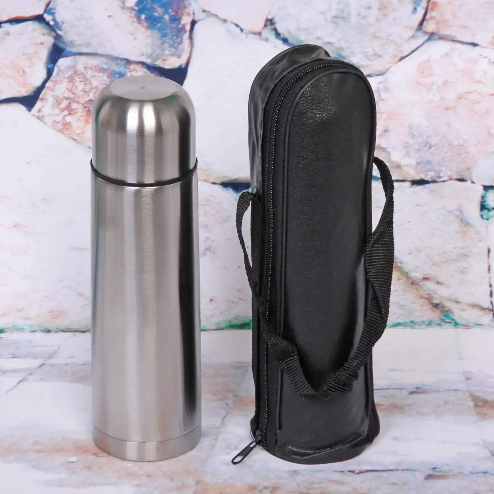 Термос вакуумный 500 мл с чехлом, нержавеющая сталь 18/8, сохранение тепла 12 часов