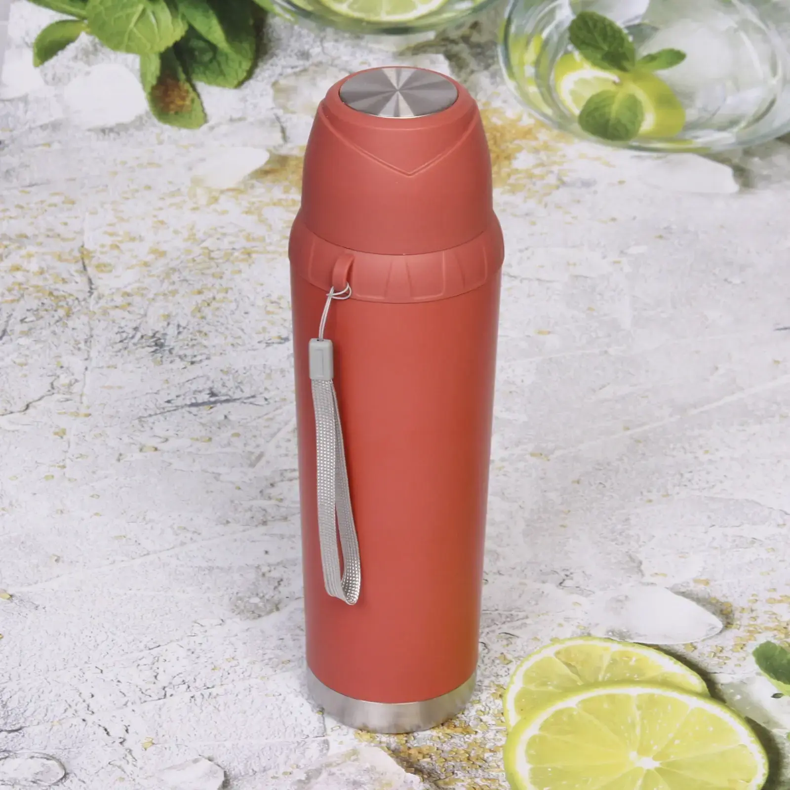 Термос имеет высоту около 30-35 см и объем 800 мл, что делает его идеальным для длительных поездок. Верхняя часть выполнена из металла с круглой крышкой, а нижняя часть — из нержавеющей стали. Резиновое уплотнение крышки обеспечивает надежную герметичность, предотвращая проливание жидкости. Этот термос станет вашим надежным помощником в любых условиях!