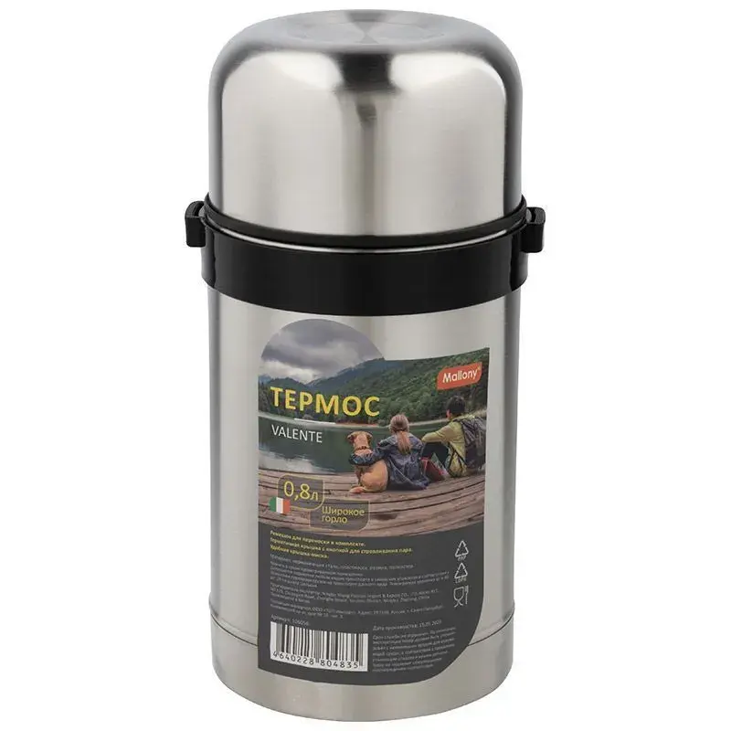 Термос с широким горлом "Valente" 0,8 л, нержавеющая сталь, серебристый/черный, компактный дизайн