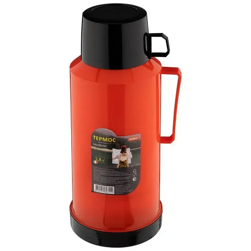 Термос «CALOROSO» с сохранением температуры, пластиковый корпус, стеклянная колба 1,8 л, красный