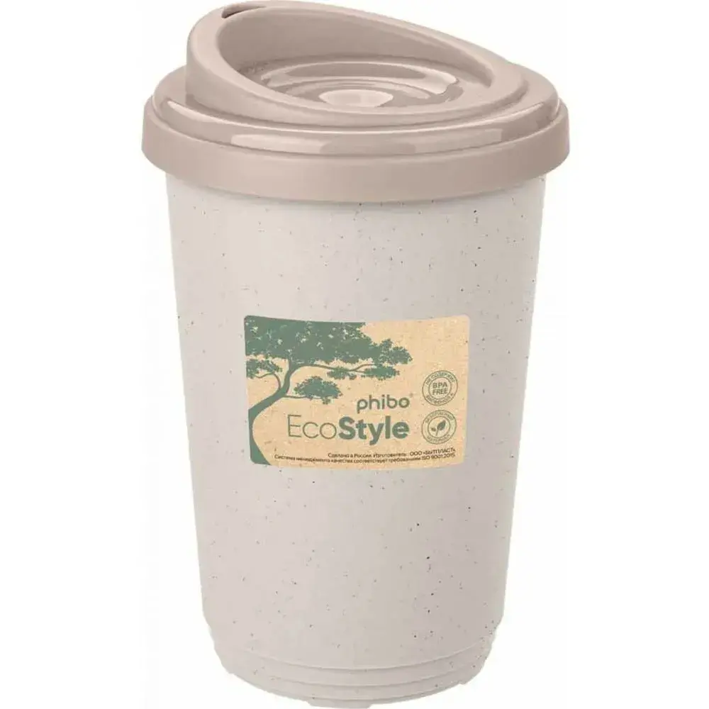 Термостакан 400 мл, бежевый флэк, легкий пластик, сохраняет тепло