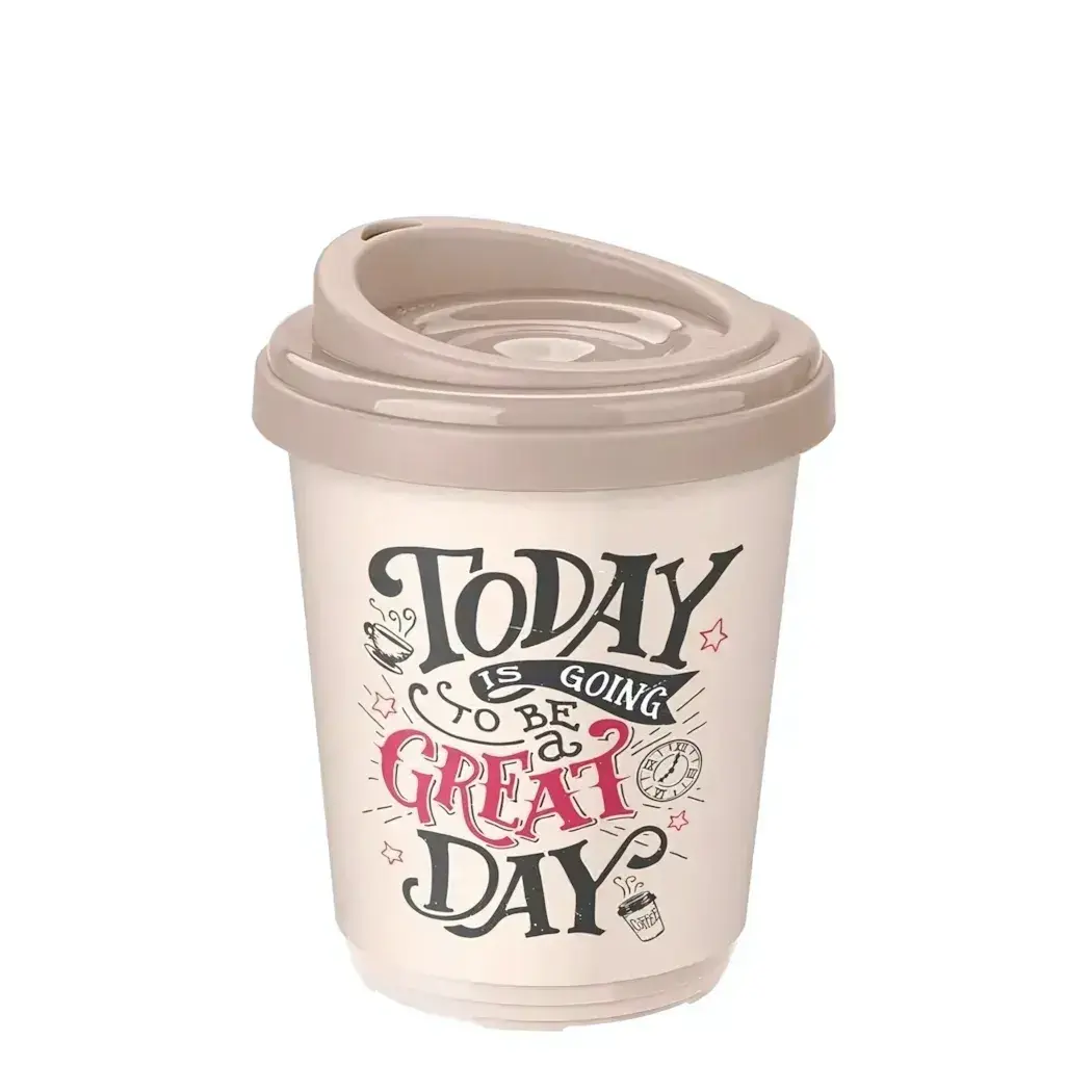 Термостакан с декором станет вашим надежным спутником в офисе, дома или во время путешествий. Его стильный дизайн с мотивирующей надписью "TODAY IS GOING TO BE A GREAT DAY" создаст позитивное настроение каждый день.